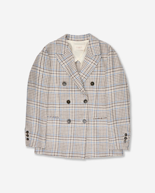New arrivalDouble-breasted Prince of Wales linen jacket