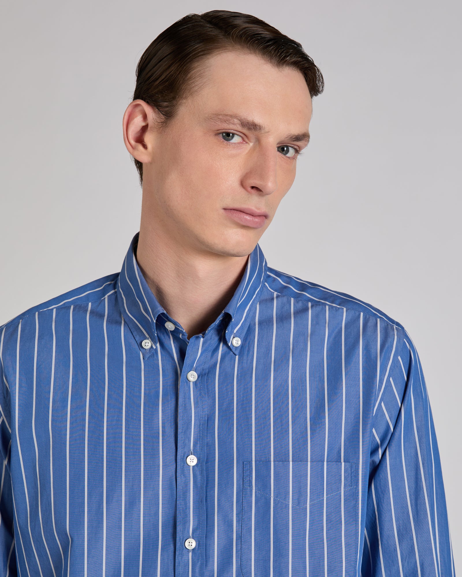 - Das Hemd hat einen Button-Down-Kragen, eine aufgesetzte, eine Patte simulierende Brusttasche mit Steppnähten und ein hinteres Carré.