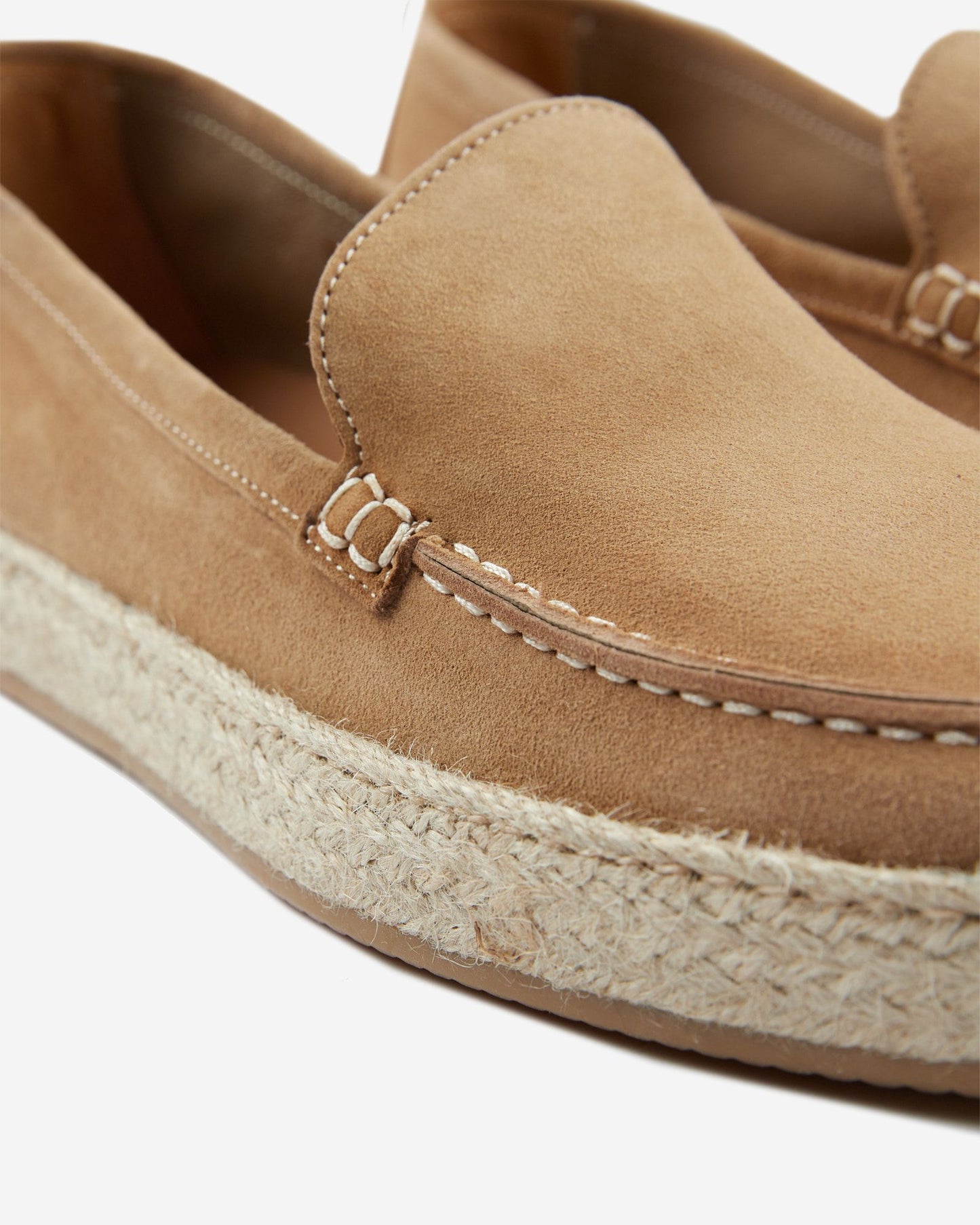 Der unangefochtene Sommerschuh, das Non-Plus-Ultra der Eleganz. Diese Schuhe werden in Italien handgefertigt. Sie zeichnen sich durch ein besonders weiches und bequemes Kalbswildleder von höchster Qualität und durch eine funktionstüchtige Gummisohle aus. Originell ist das Detail aus Seilgeflecht. Sie sind vielseitig und bequem und begleiten alle Looks der Saison mit Stil.