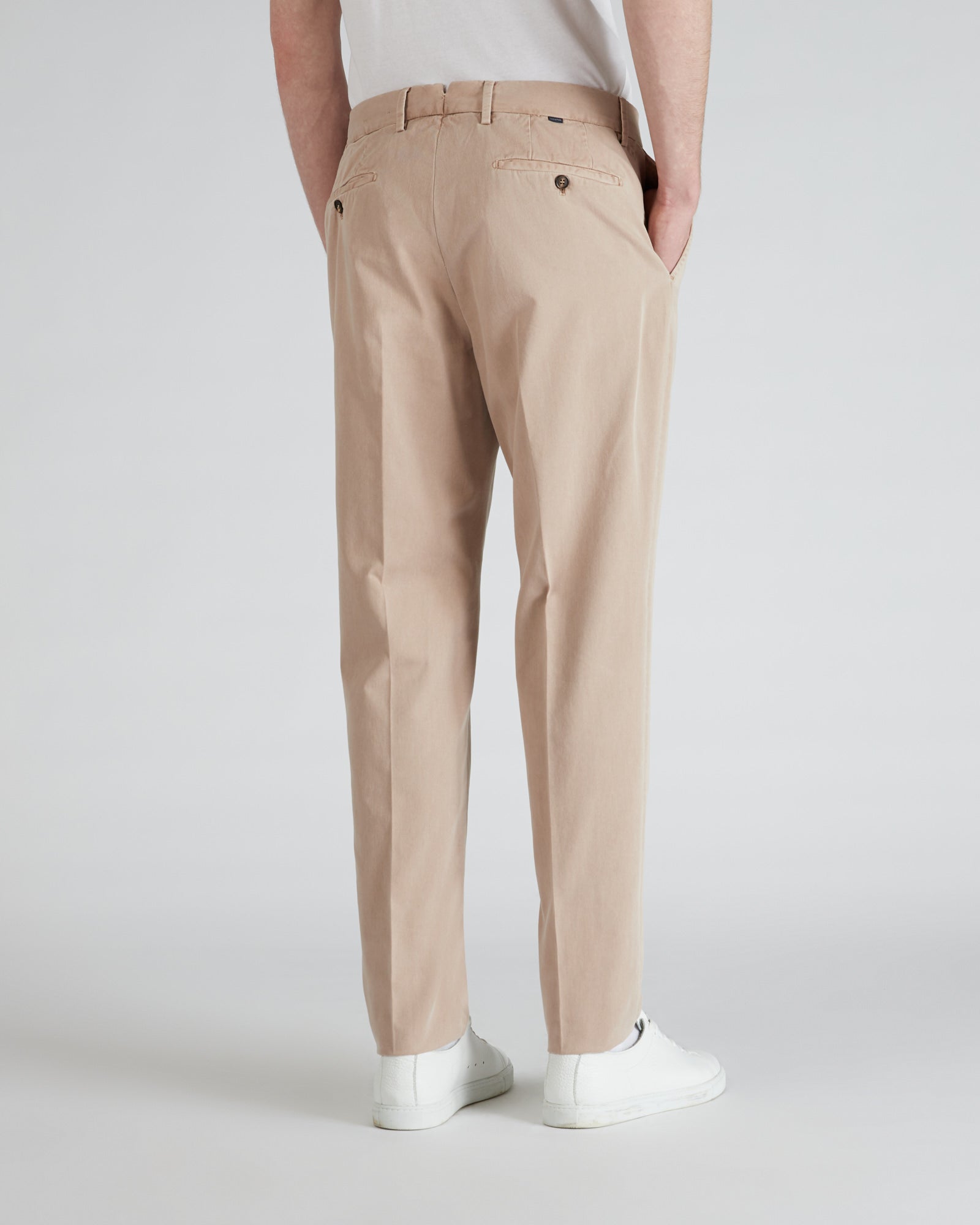 Die Hose hat Eingriffstaschen vorne, Gesäßtaschen mit Einzelnaht und Knopf. Die Hose wird ungesäumt geliefert. Das Model ist 1,80 m groß und trägt Größe 50.