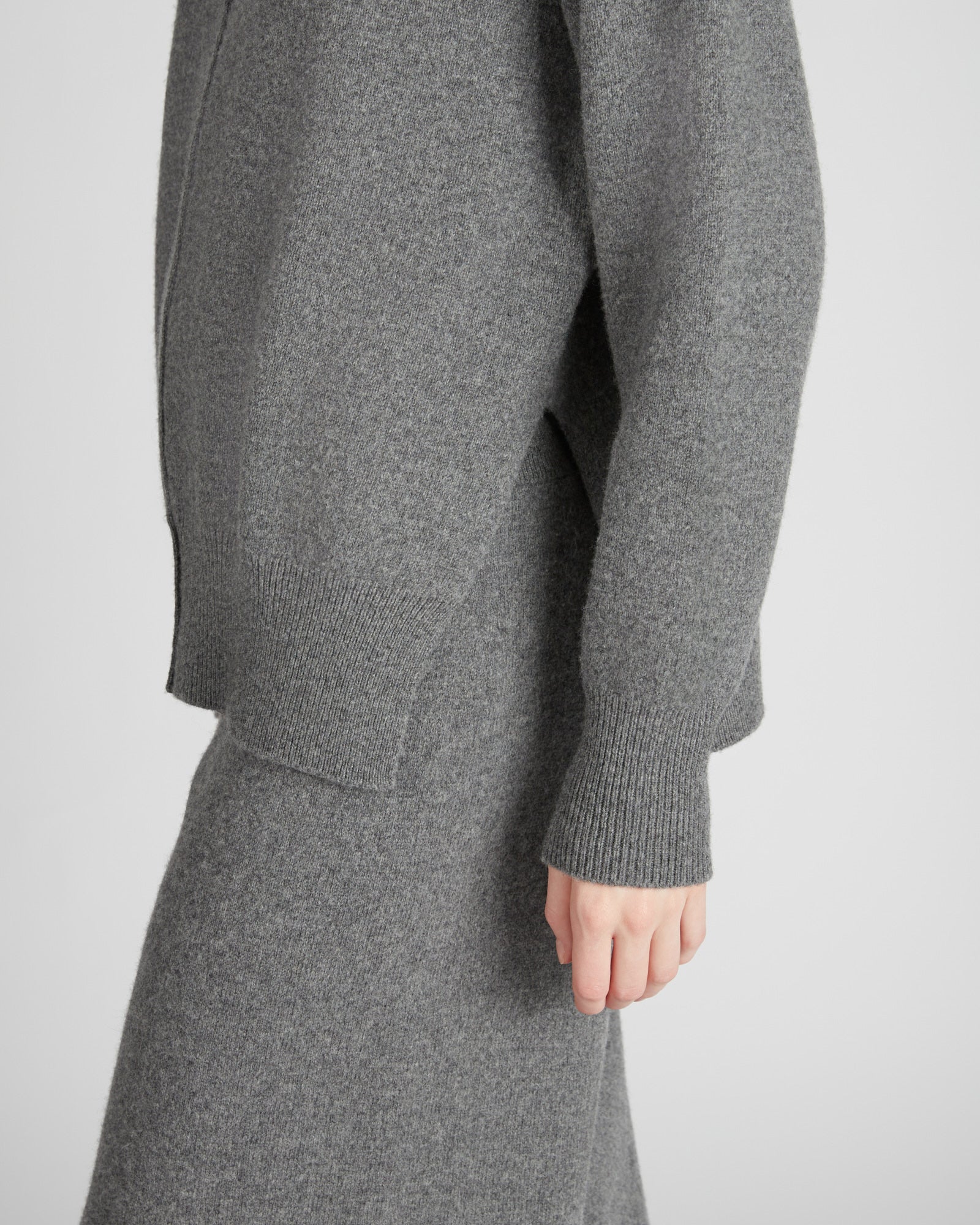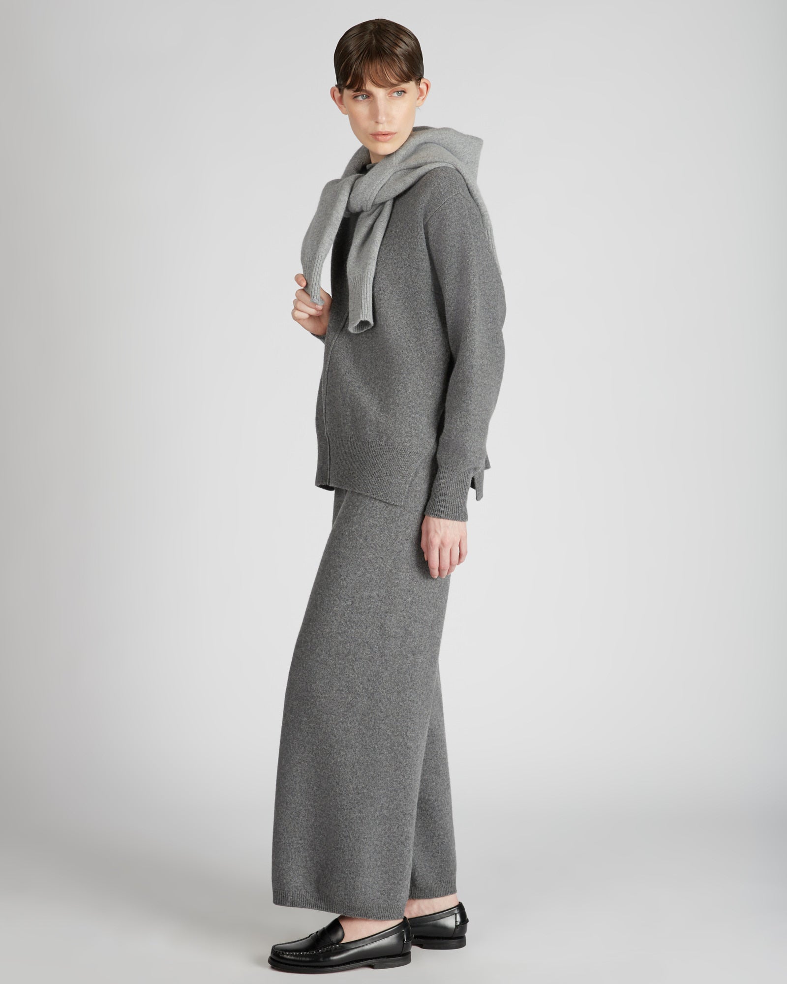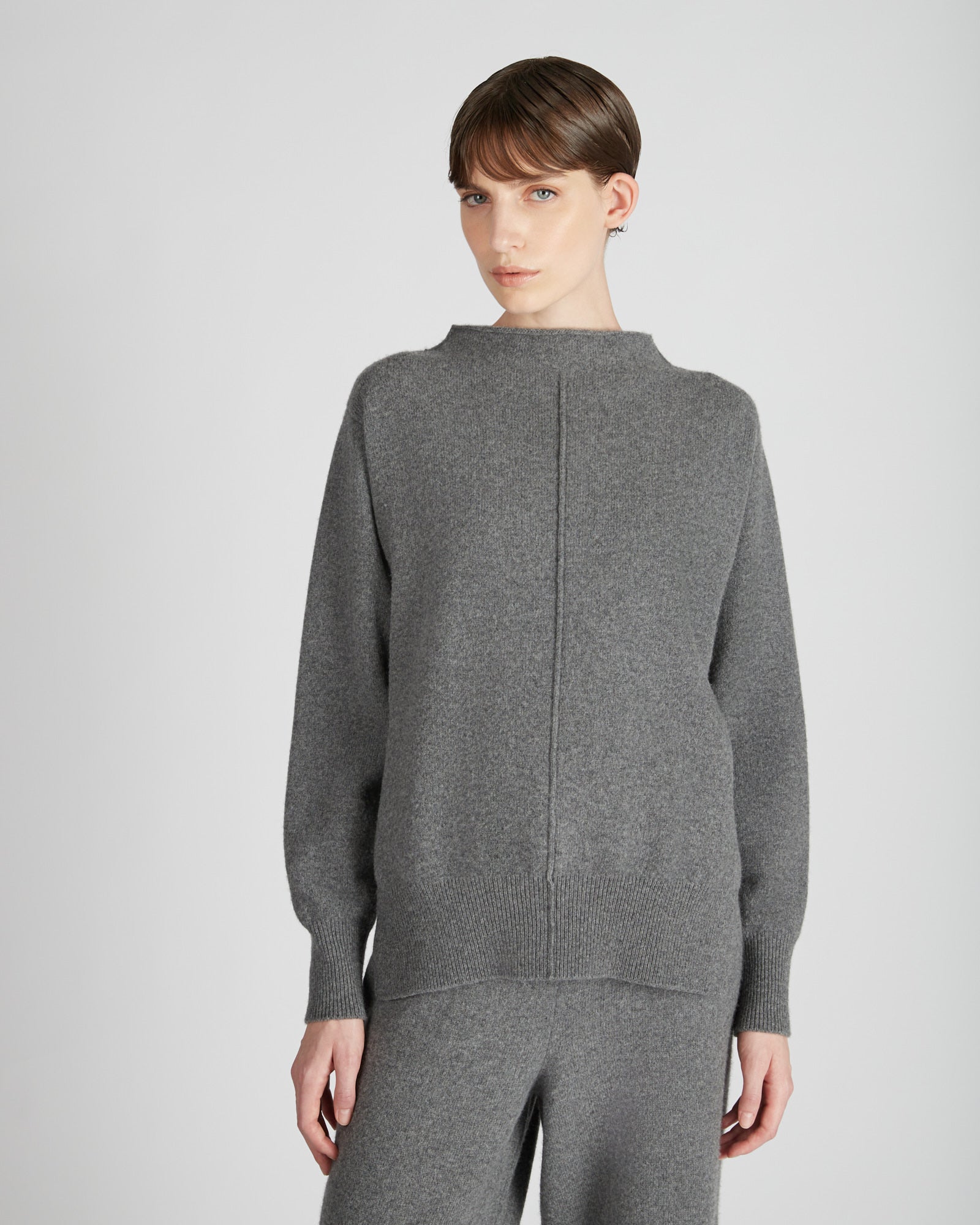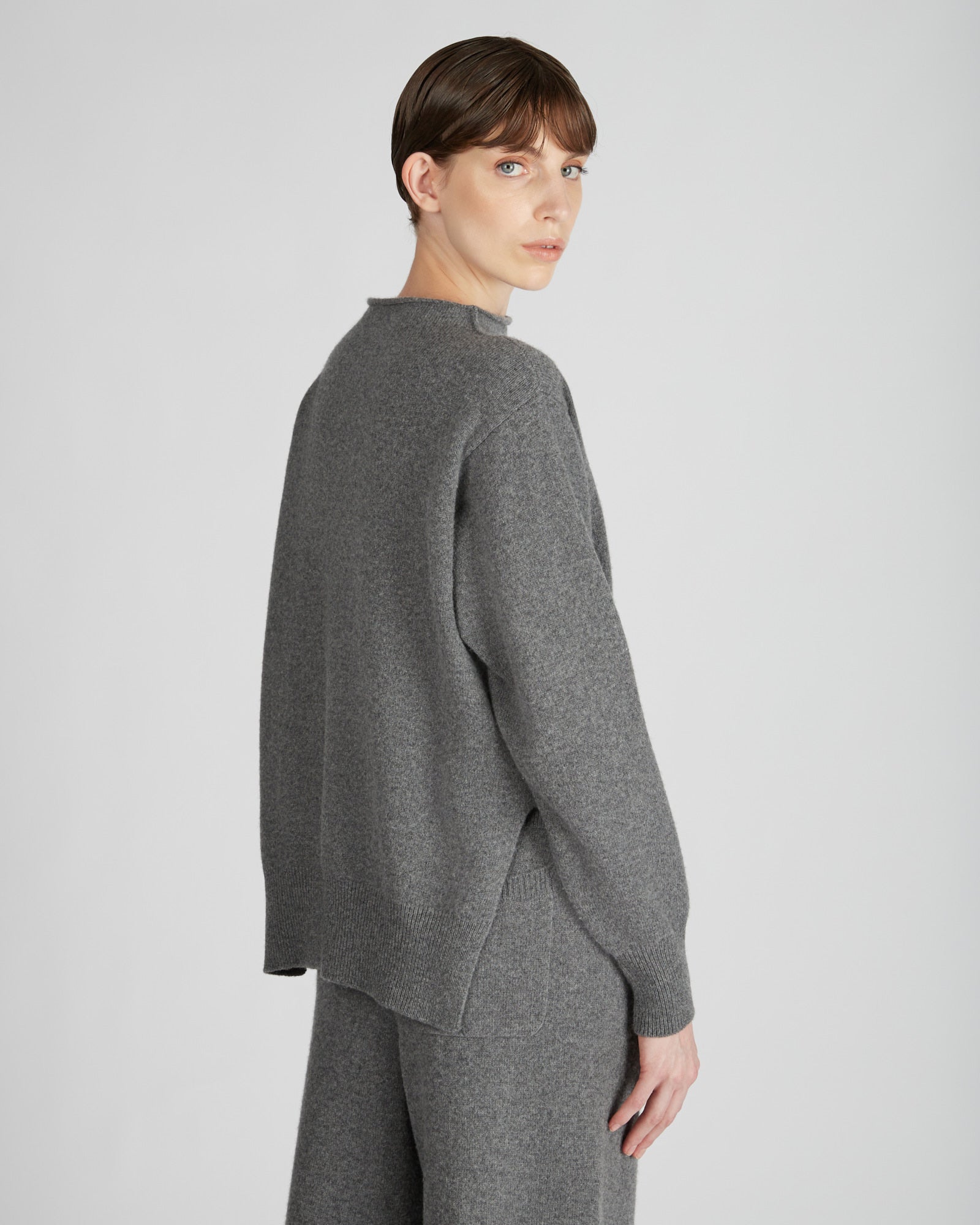 A very precious garment in the season's selection, this sweater is made of a luxurious combination of cashmere and wool. The result is an extremely warm, soft and soft fabric, characterised by a shiny appearance. The model is original, characterised by a regular fit that remains soft in the hip area and a cut neck, which gives the garment a contemporary look. The sweater can be combined with trousers made of the same fabric, for a leisure outfit with unprecedented comfort.