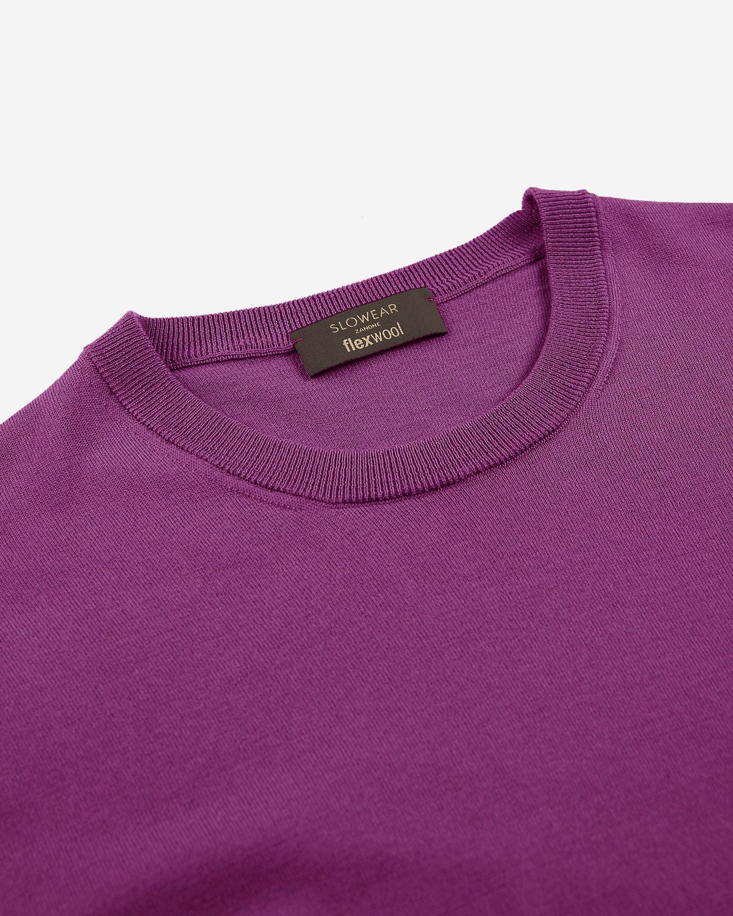 Obtained by blending the world's best merino wool with a thin high-quality stretch thread, Flexwool is a very fine yarn featuring elasticity, resilience, lightness, thermal capacity and unprecedented comfort. As of this season, the yarn is enriched with mulesing-free certification, which attests to the fact that no violent practices are used against animals.