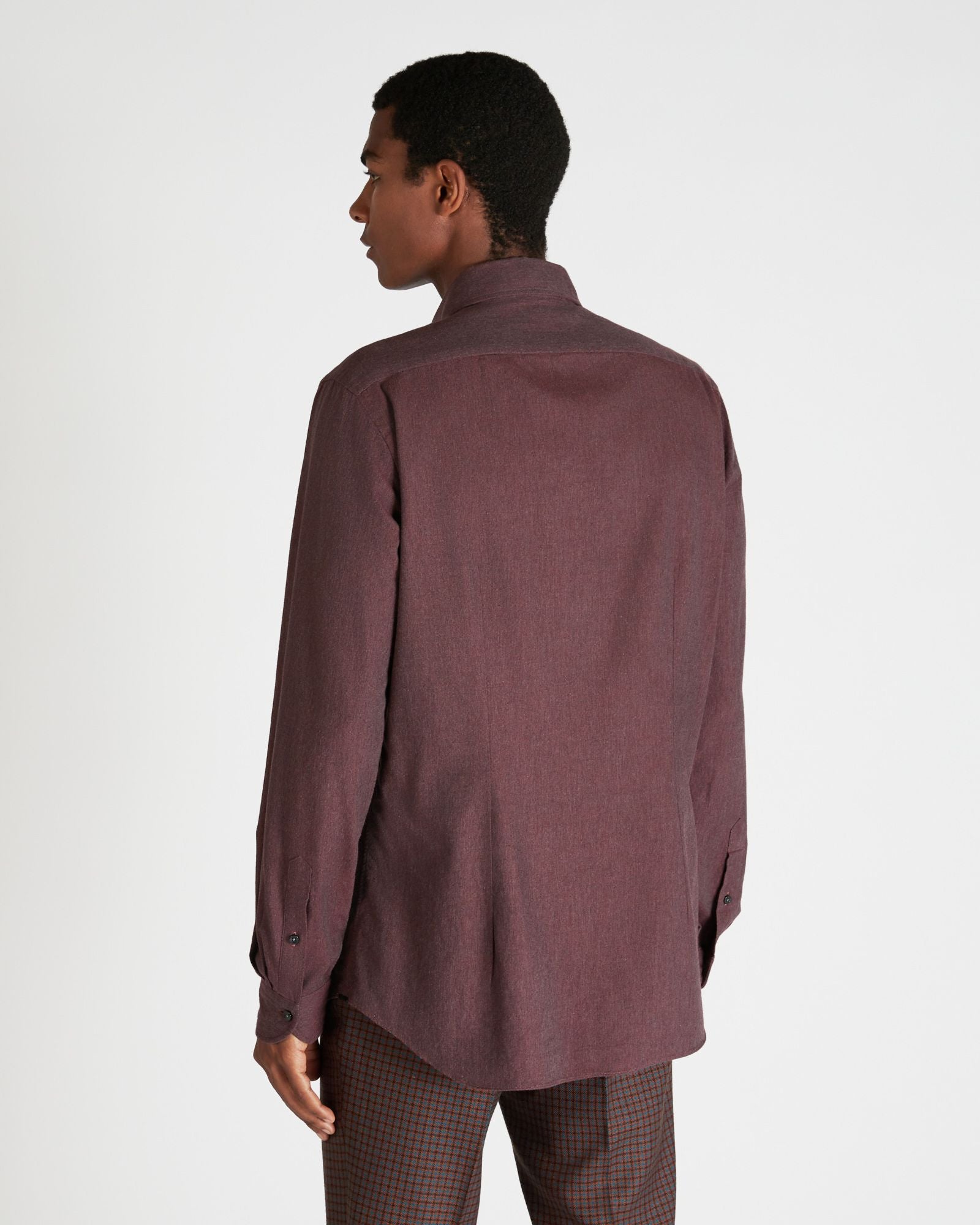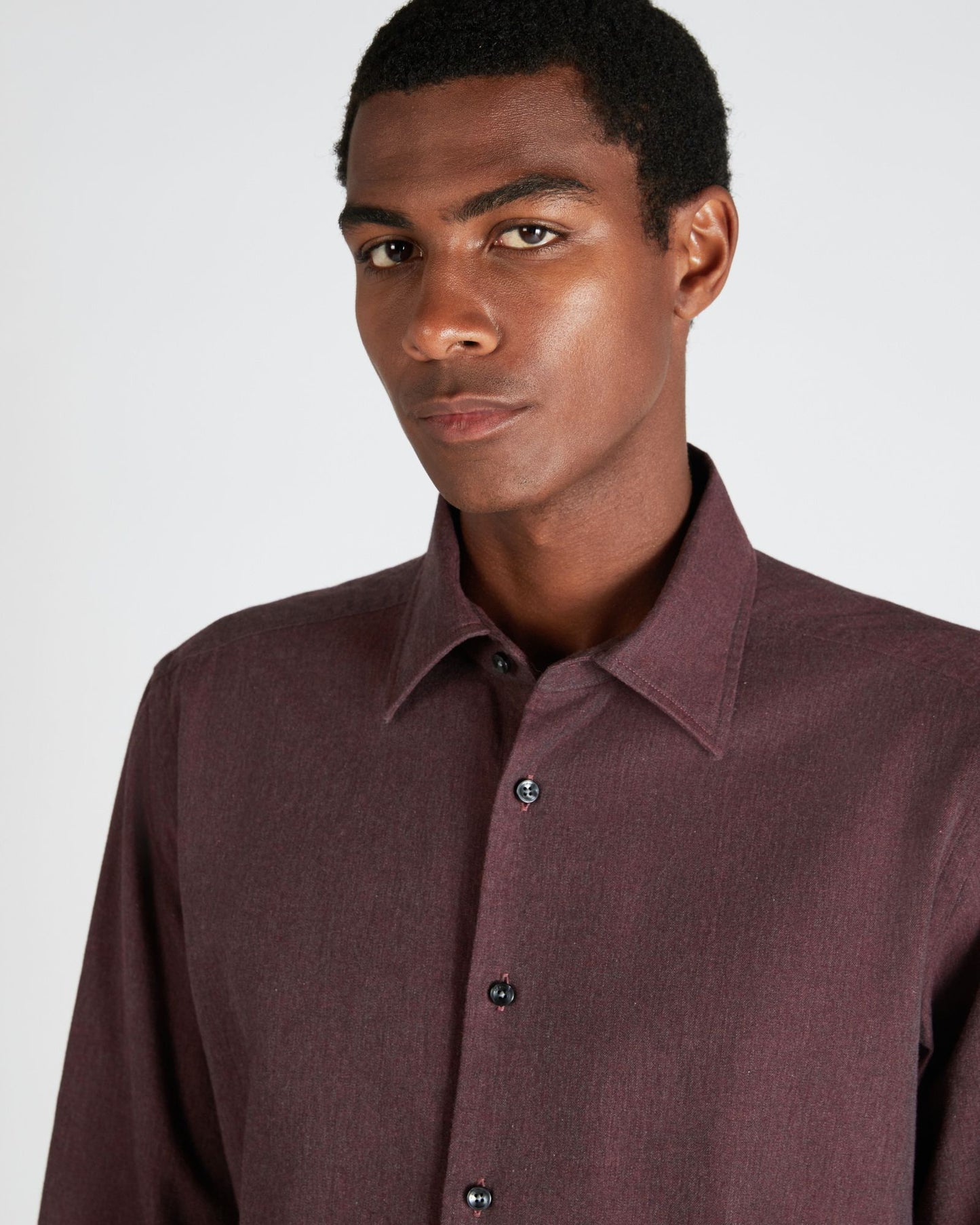 Authentic comfort and sophisticated texture come together in this regular fit shirt, made of melange twill cotton flannel. The soft and pleasantly warm fabric features a weave that lends visual depth and a full-bodied but enveloping feel. Moreover, it has been produced through a certified process that ensures worker safety and respect for the environment at all stages of production. The regular fit ensures comfort and freedom of movement.