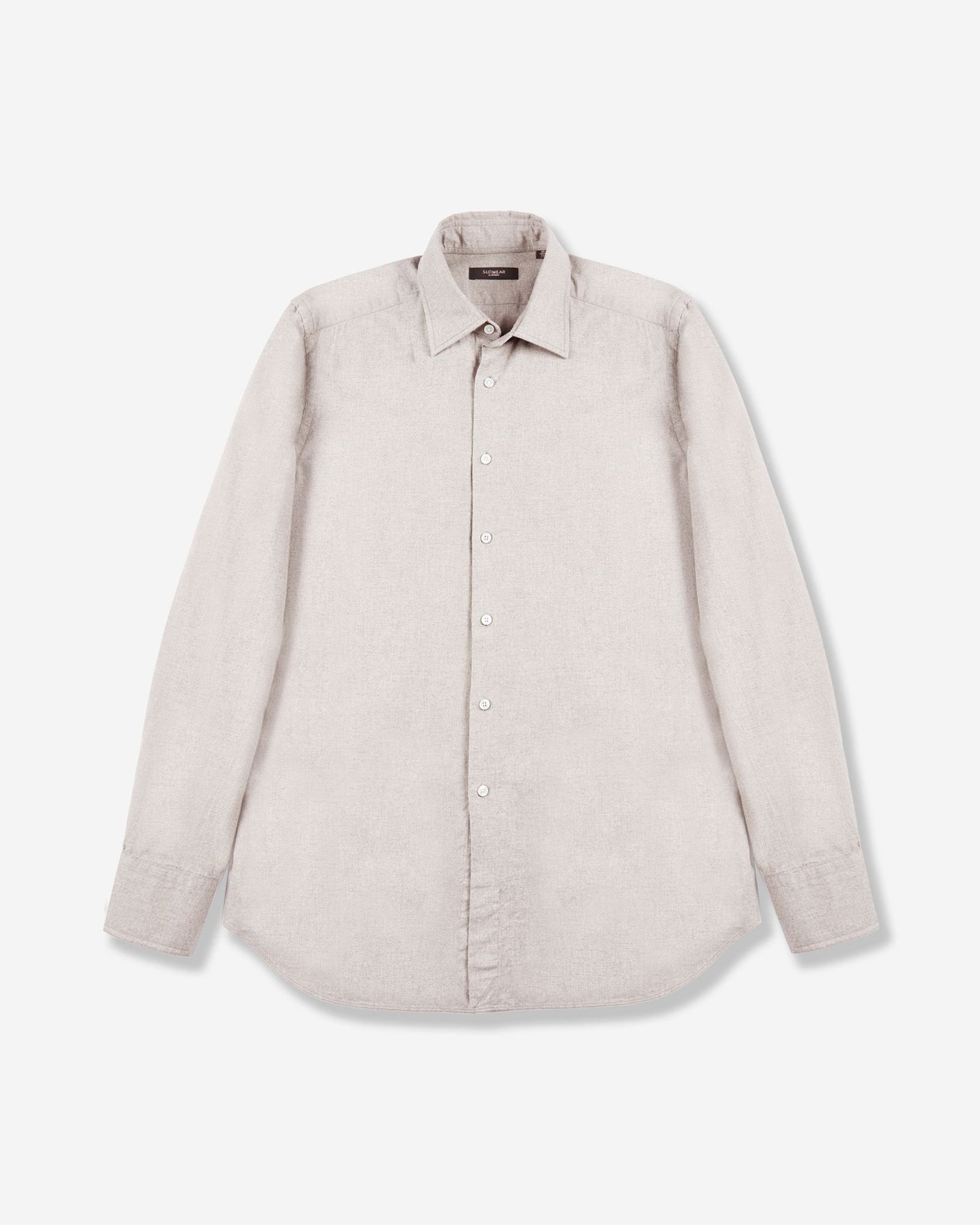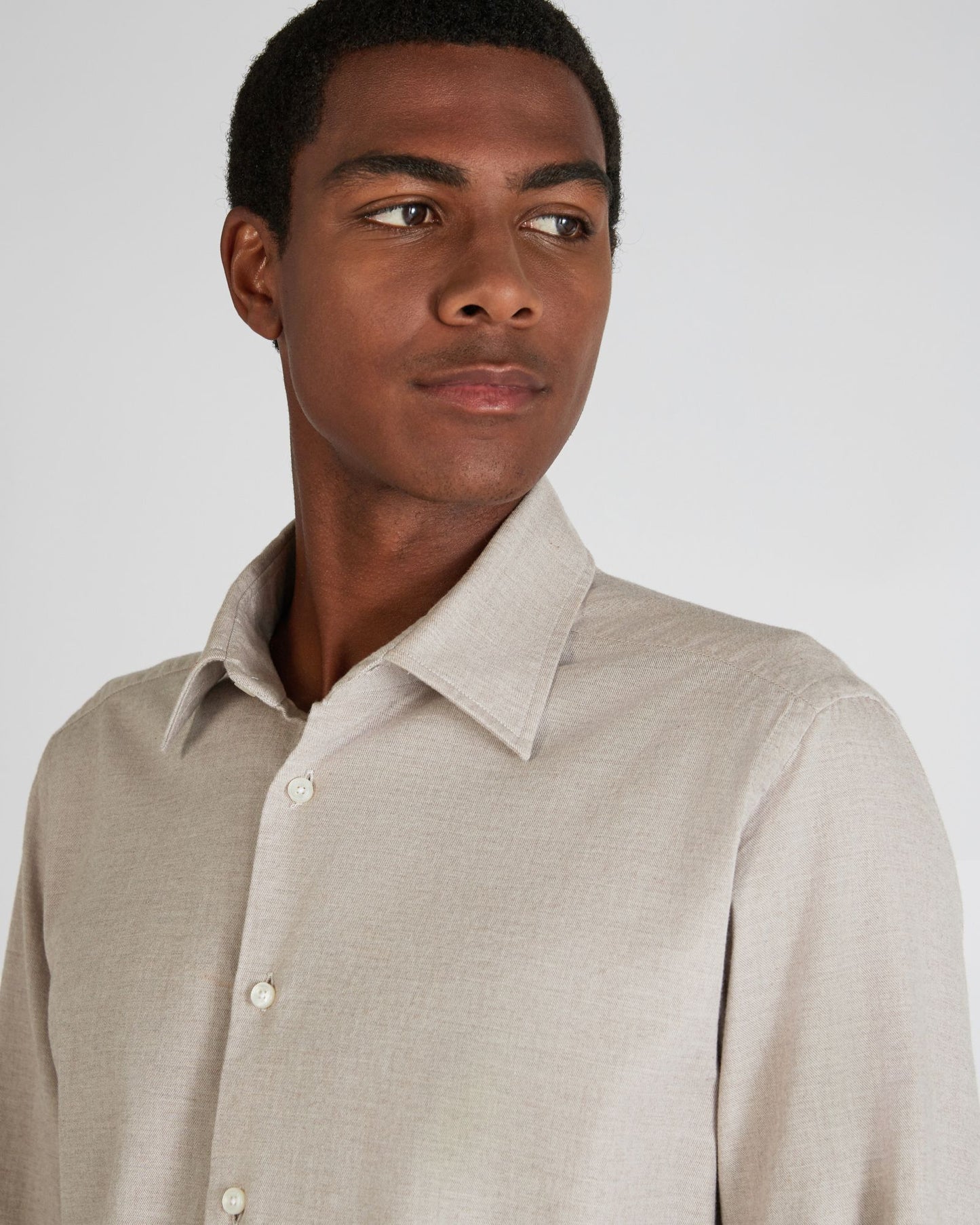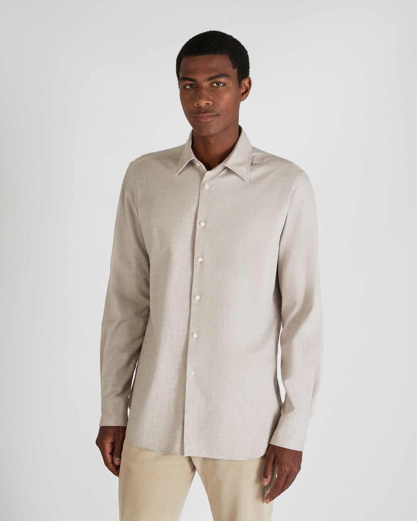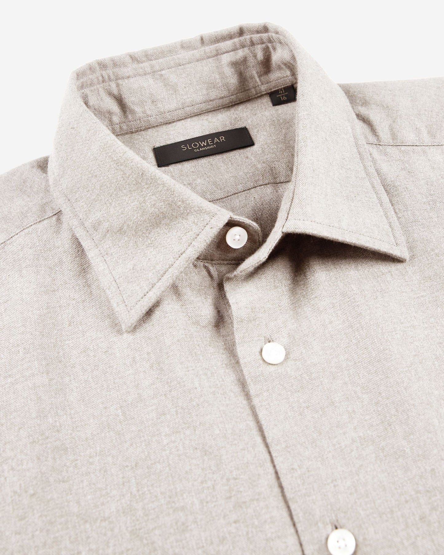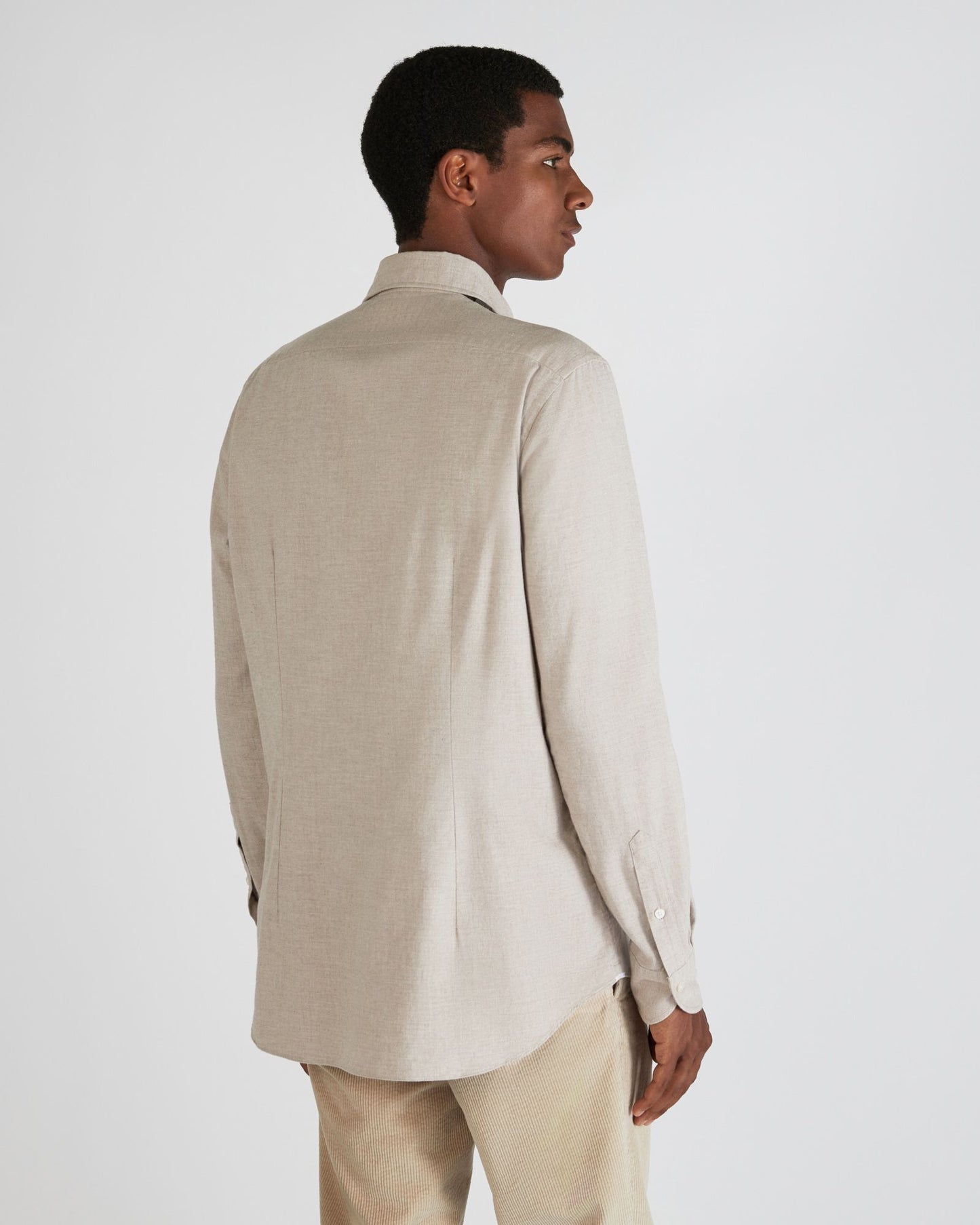 Authentic comfort and sophisticated texture come together in this regular fit shirt, made of melange twill cotton flannel. The soft and pleasantly warm fabric features a weave that lends visual depth and a full-bodied but enveloping feel. Moreover, it has been produced through a certified process that ensures worker safety and respect for the environment at all stages of production. The regular fit ensures comfort and freedom of movement.