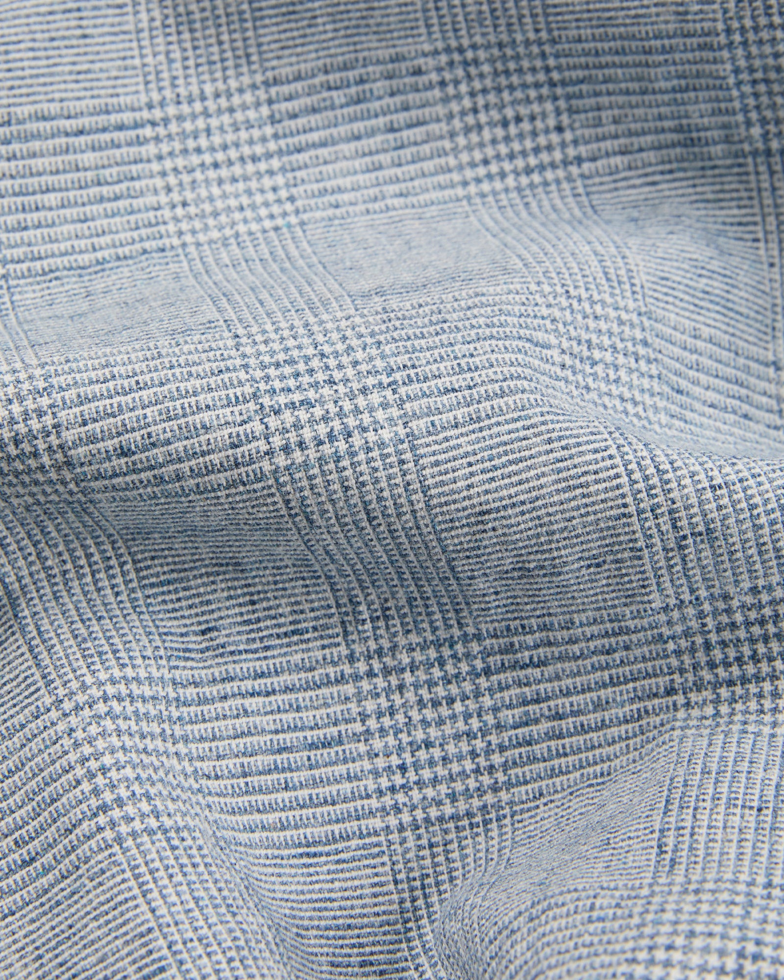 The Prince of Wales check, originating in the Scottish Highlands, is a timeless pattern of English tailoring tradition that has, over the decades, earned a place of honour in the male wardrobe. Characterised by overlapping checks and contrasting details, it gives the garment a refined elegance that is both eccentric and understated. Here it is used in a summery key, on a soft and comfortable stretch cotton.