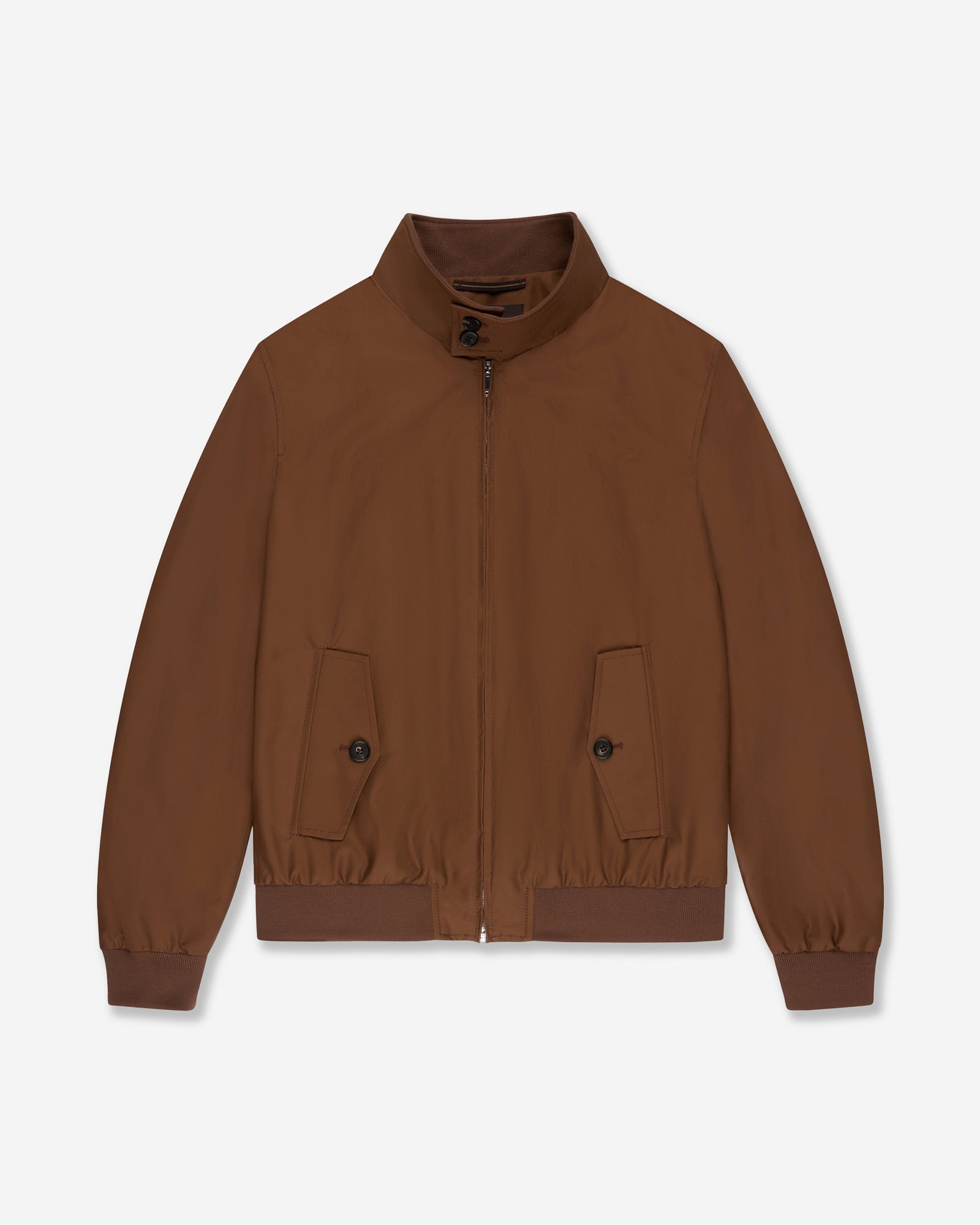 A blouson with a sartorial spirit yet an authentically casual character, designed to accompany the transitional seasons with style. Its essential and refined construction is combined with a functional attitude, making it a versatile garment perfect for everyday wear. The fabric is a fine blend of cotton and nylon, further enhanced by a water-repellent polyurethane coating that provides light protection against the elements while preserving a pleasant feel.