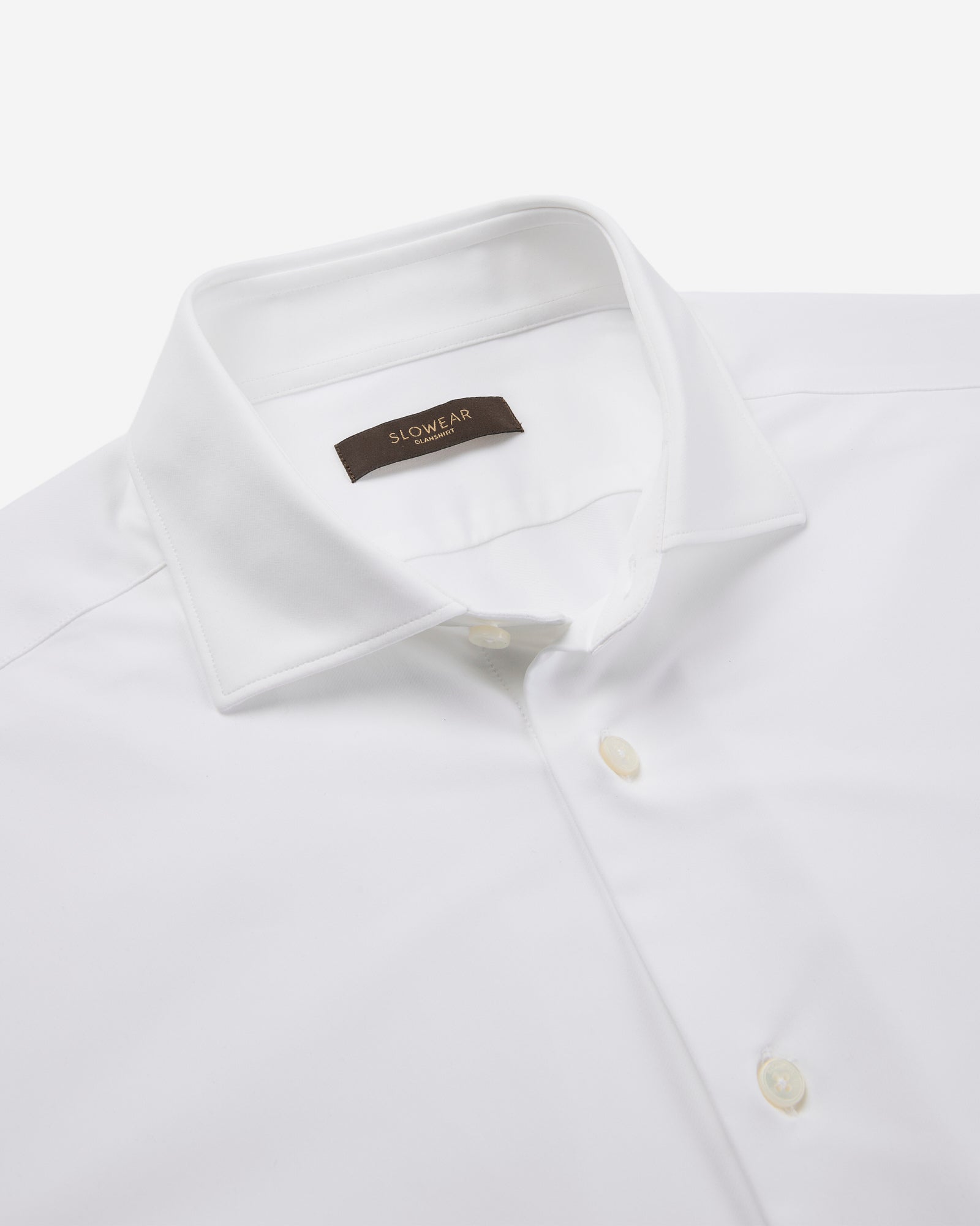Wash & Wear and no-iron technology are this shirt's key features, combining a technical fabric inspired by the sportswear world with the aesthetic elegance of a tailored shirt. This material is crease-resistant and extremely elastic. You can wash it conveniently at home; it dries extremely quickly and does not require ironing. Moreover, it has been produced through a certified process that ensures worker safety and respect for the environment at all stages of production.