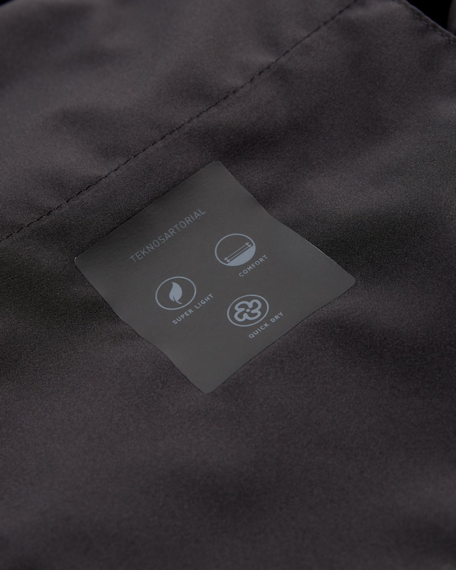 The Slowear Teknosartorial line represents the natural evolution of supreme tailoring skills combined with next-generation technical fabrics, drawn from sportswear and athletic wear. An exclusive offering that redefines the boundaries of the most traditional suit, delivering a style that makes no concessions when it comes to comfort. An example of this is the small capsule of garments in Teknotela of which these trousers are part. The fabric is ultra-light, breathable, crease-resistant and has a crisp, lively feel. The style combines comfort features, such as the drawstring fastening and the elasticated back, with a cut that evokes classic tailoring. Paired with the blazer or the blouse, it creates a refined casual suit.