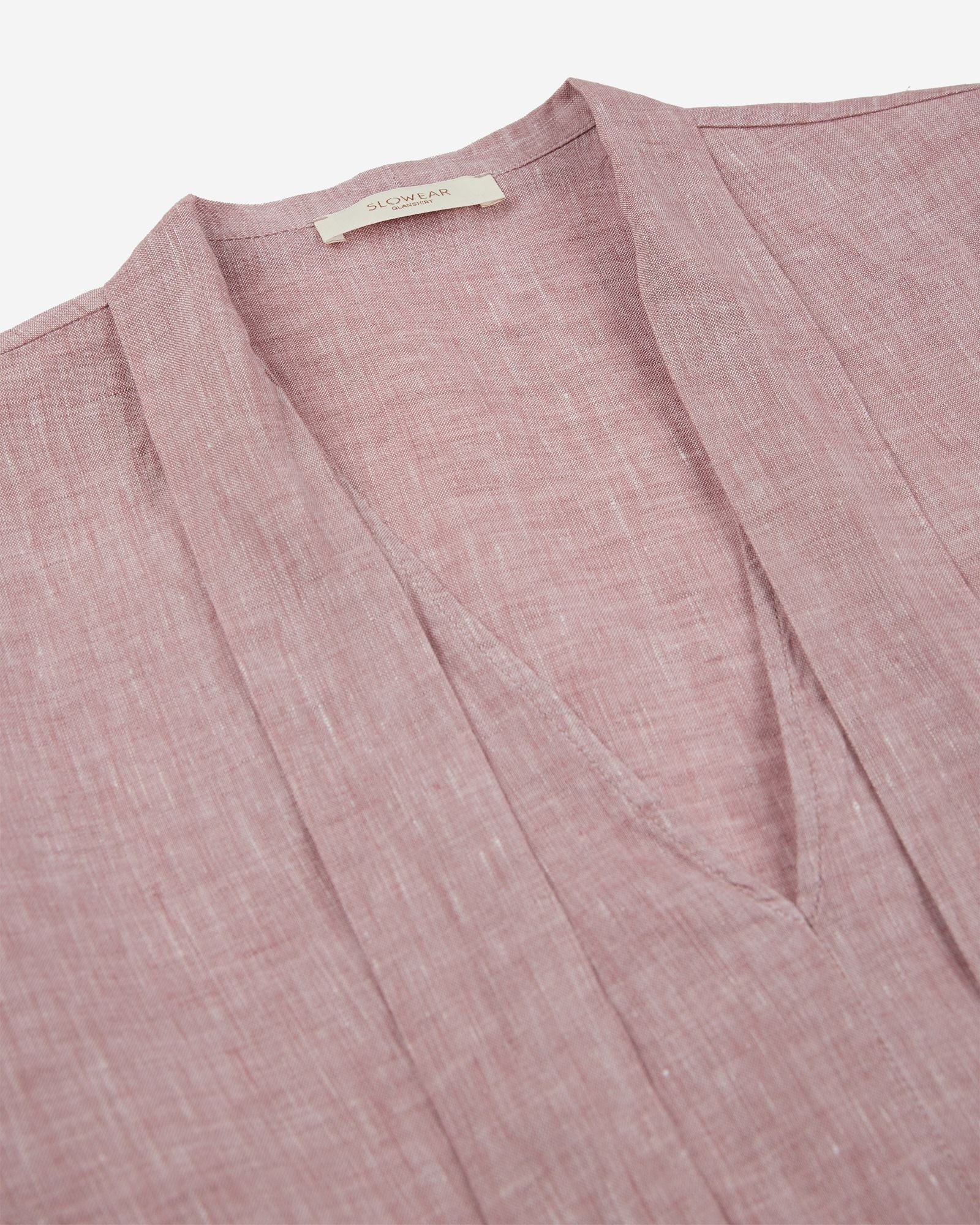 Elegant and refined, the kaftan shirt has a timeless allure and with its soft volumes is a perfect expression of summer lightness. The selected fabric is a soft linen featuring a subtly iridescent appearance that accentuates the garment's summer elegance.