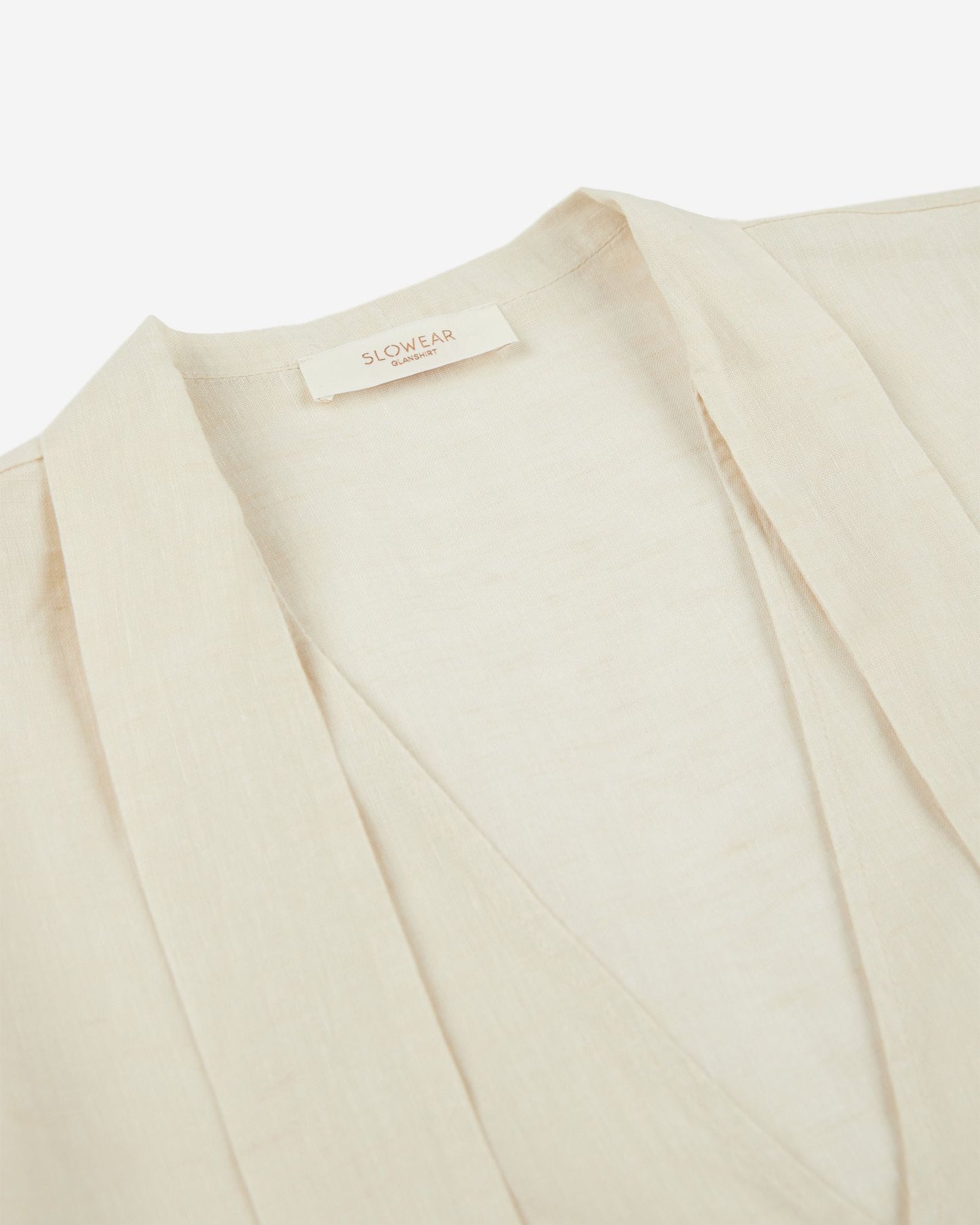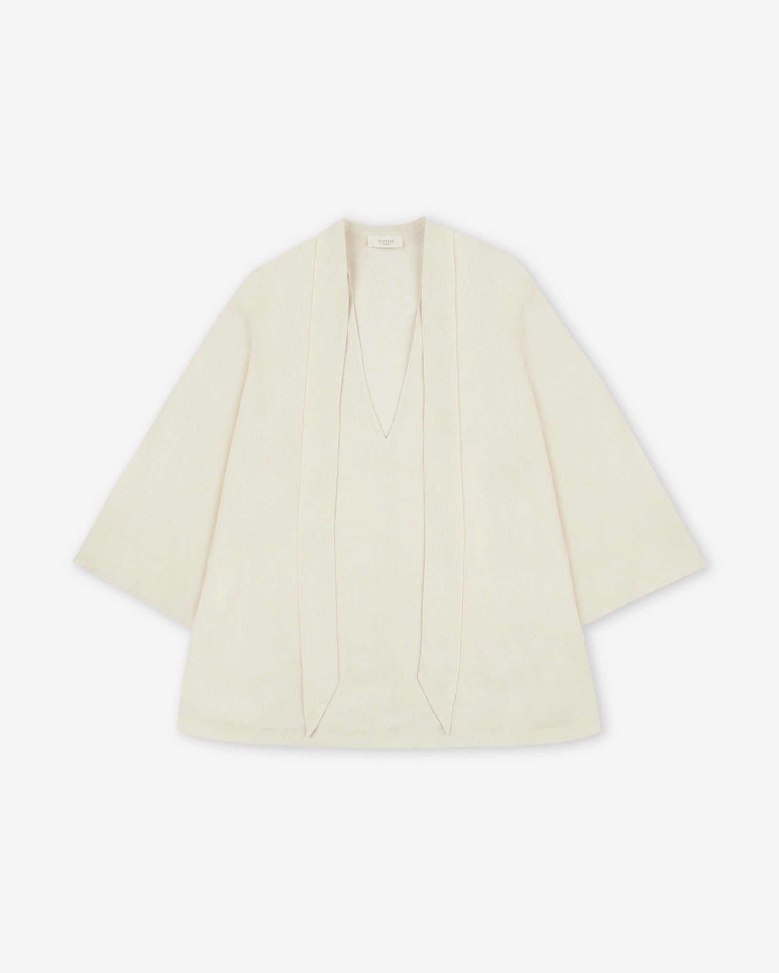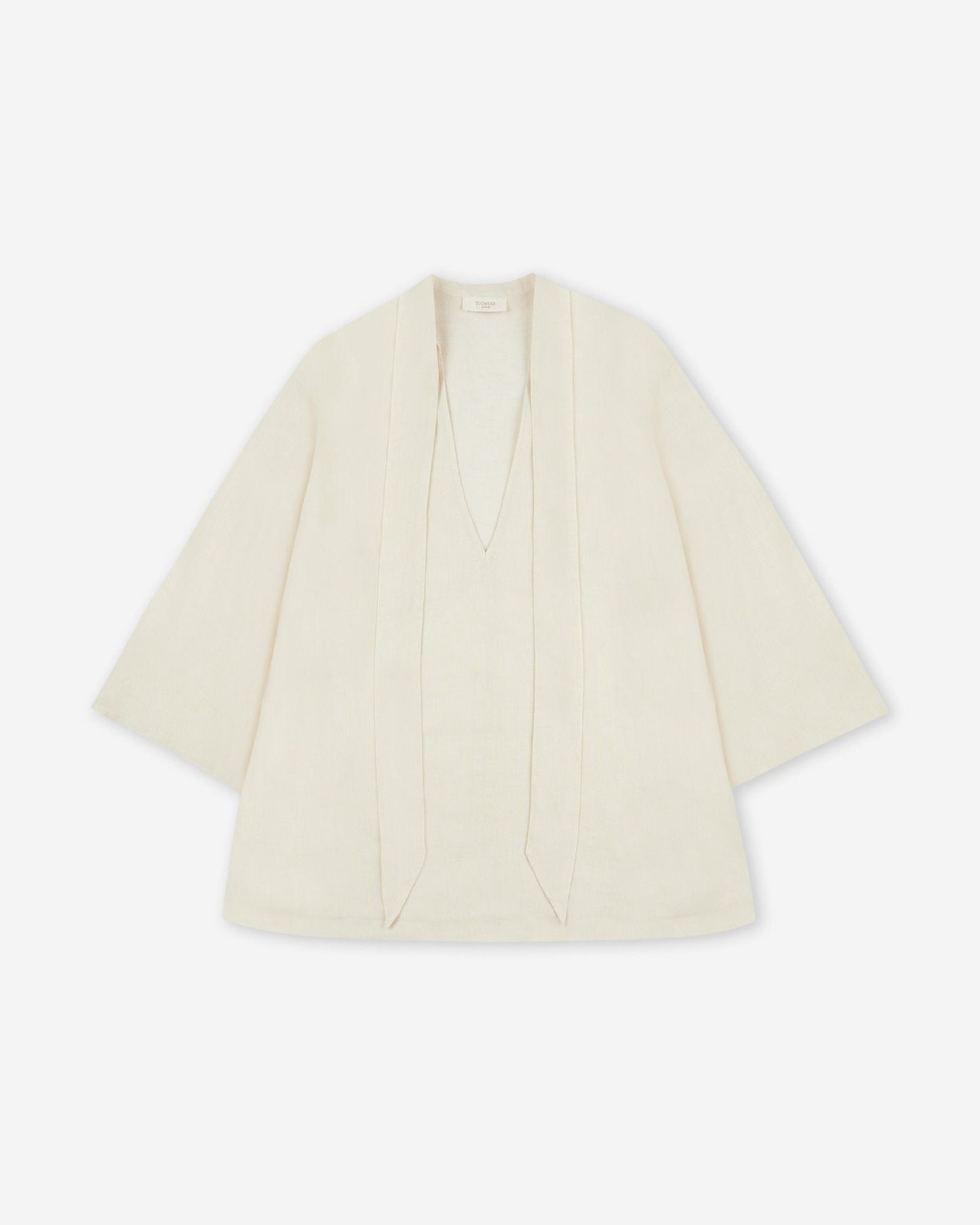 Elegant and refined, the kaftan shirt has a timeless allure and with its soft volumes is a perfect expression of summer lightness. The selected fabric is a soft linen featuring a subtly iridescent appearance that accentuates the garment's summer elegance.