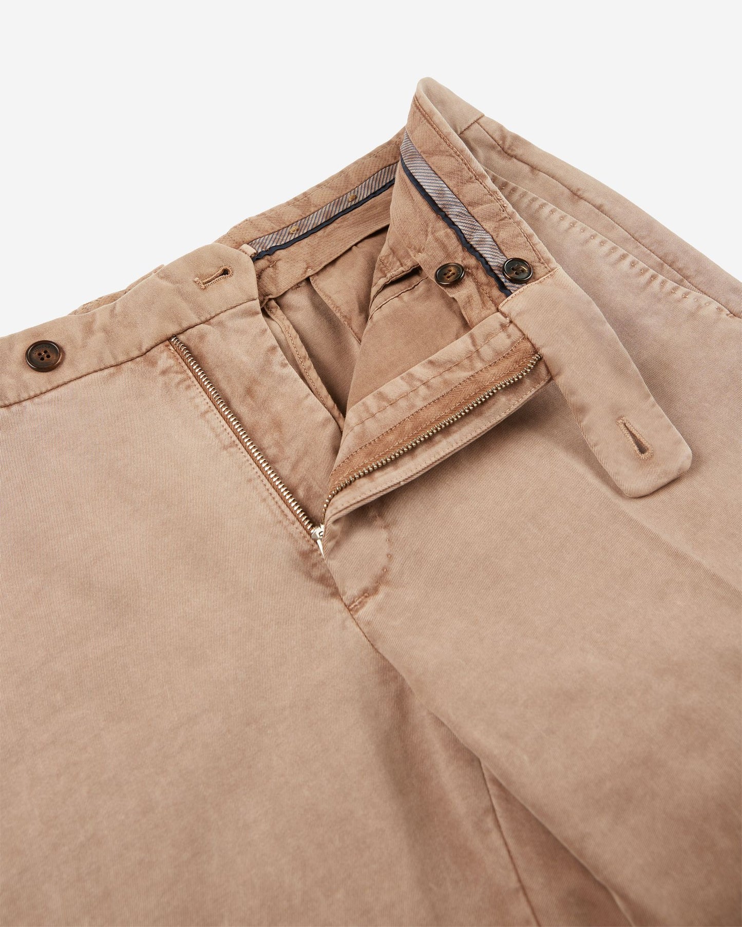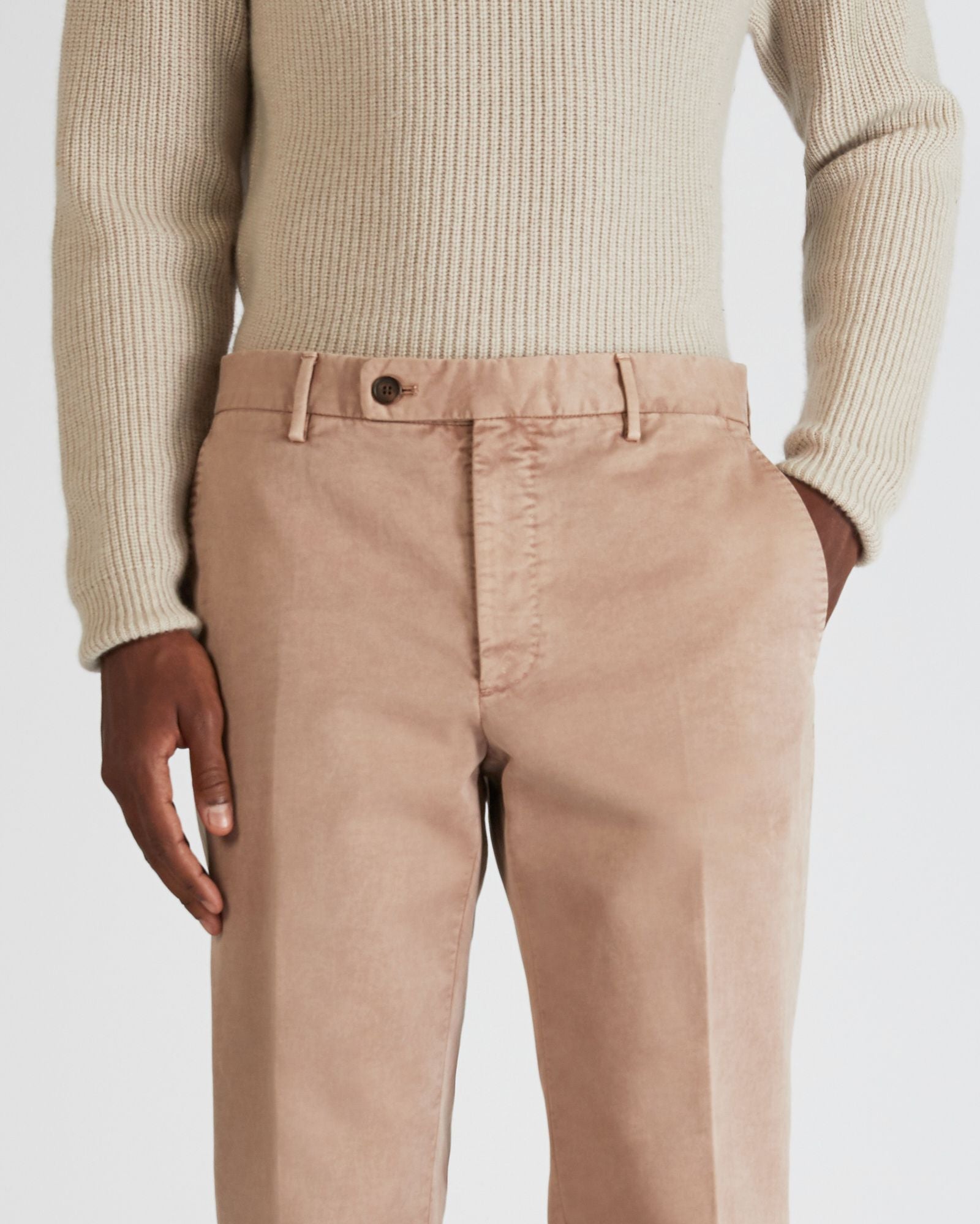 An expression of avant-garde and technical sophistication, the trousers from the "Earth" capsule collection incorporate the best of our responsible range. The fabric used is an organic cotton that is produced through a certified process that ensures worker safety, respect for the environment and minimal use of harmful chemicals at all stages of production. The dyeing process is carried out through an innovative technique that involves the use of only natural powders, extracted from minerals and sediments. The end result are garments characterised by natural and delicate nuances, that will easily find their place in your seasonal wardrobe.