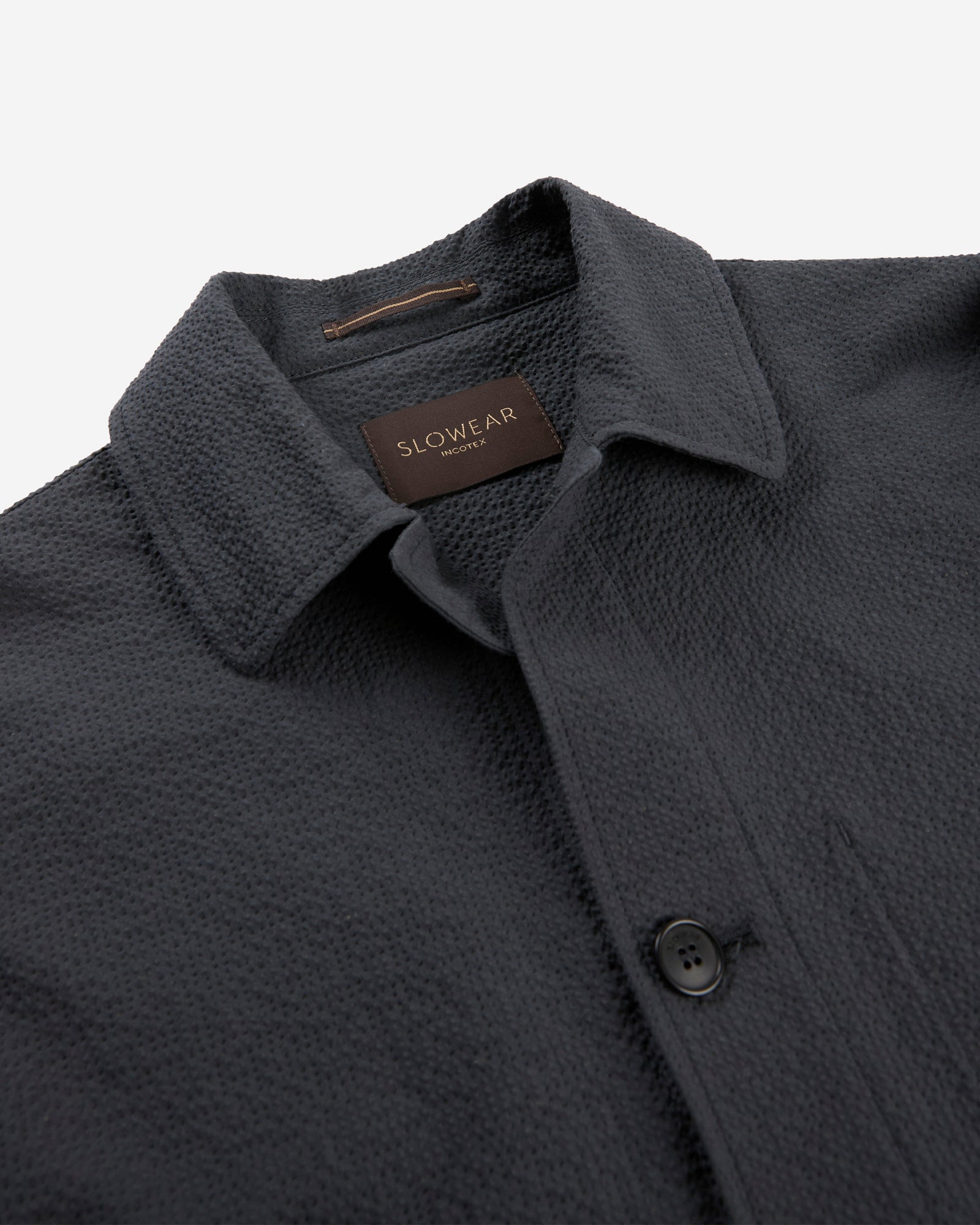 With strong workwear influences that characterise its uniqueness, the shirt is one of the most iconic garments of the Slowear range. Its special construction makes it a perfect outerwear piece in the transitional seasons and, at the same time, a jacket with a casual feel. Here it is made of a cotton and silk seersucker, characterised by its iconic appearance that emphasises the casual soul of the garment. Team the jacket with trousers in the same fabric.