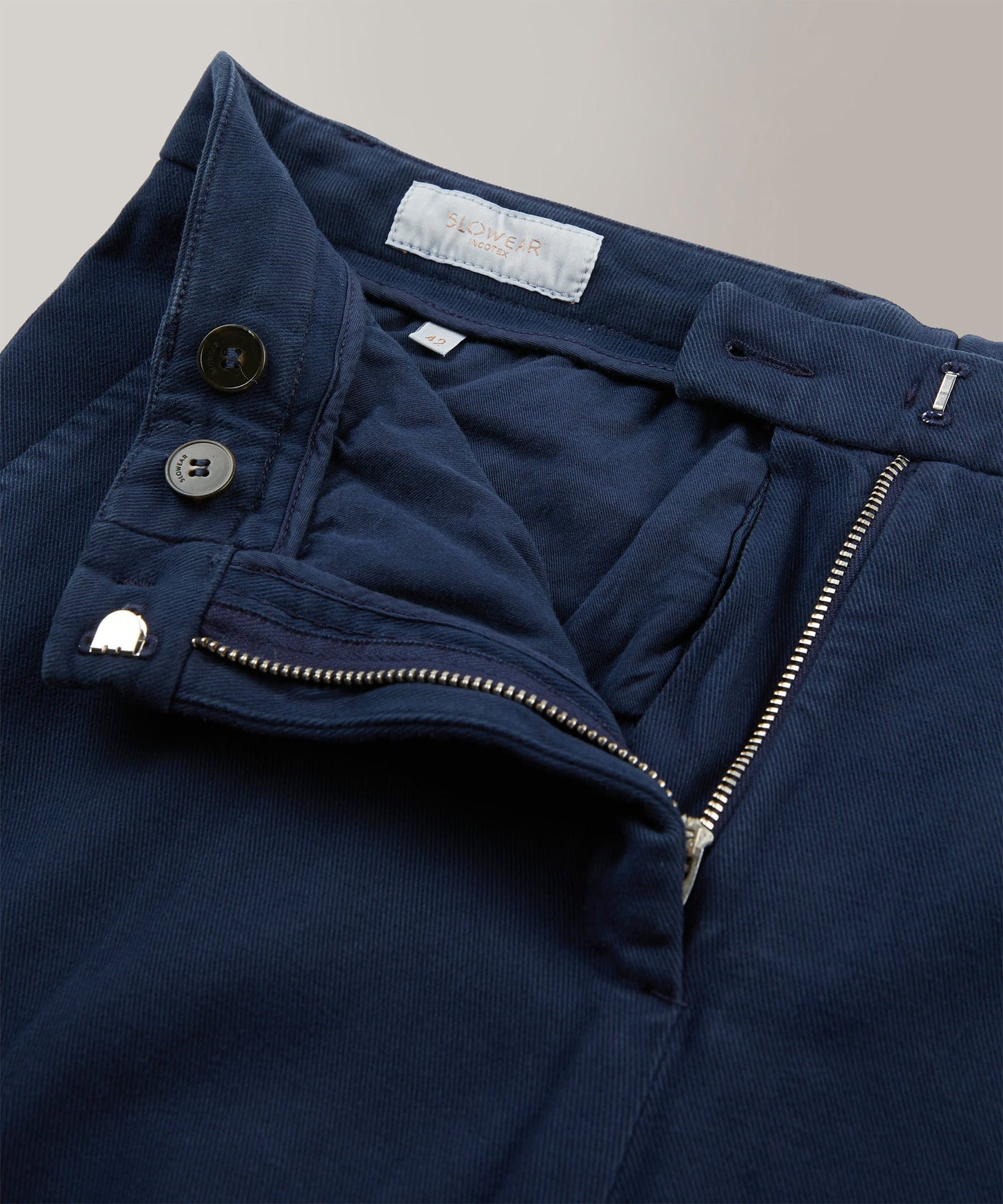 Durable fabric with a strong feel, cotton drill has a particular diagonal construction of the weave that gives it its typical stiff appearance. The slim lines of the slim-fit model make the garment extremely versatile, for endless style combinations.