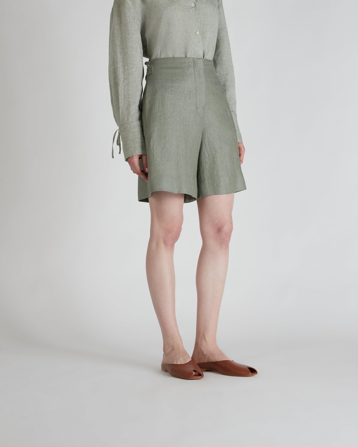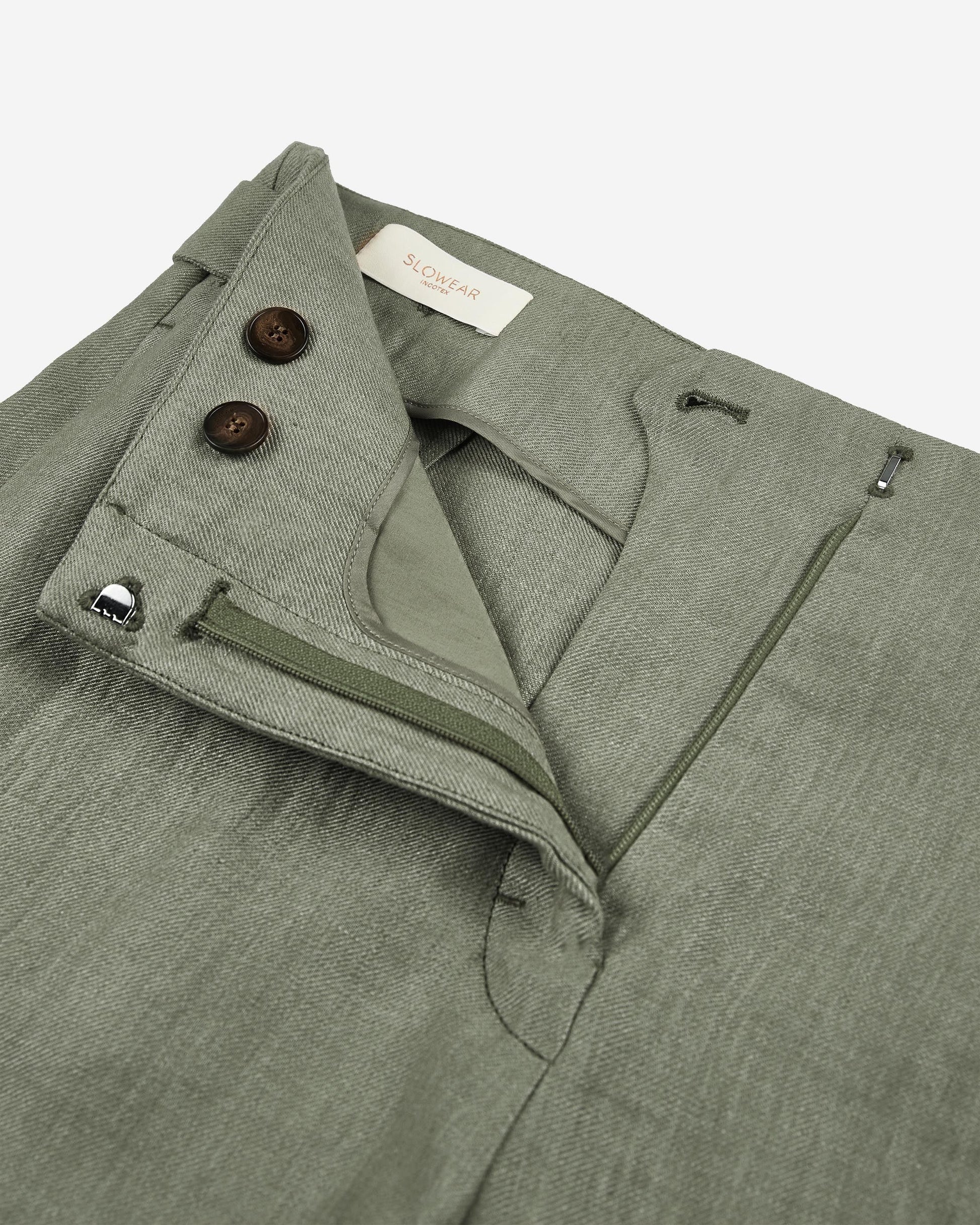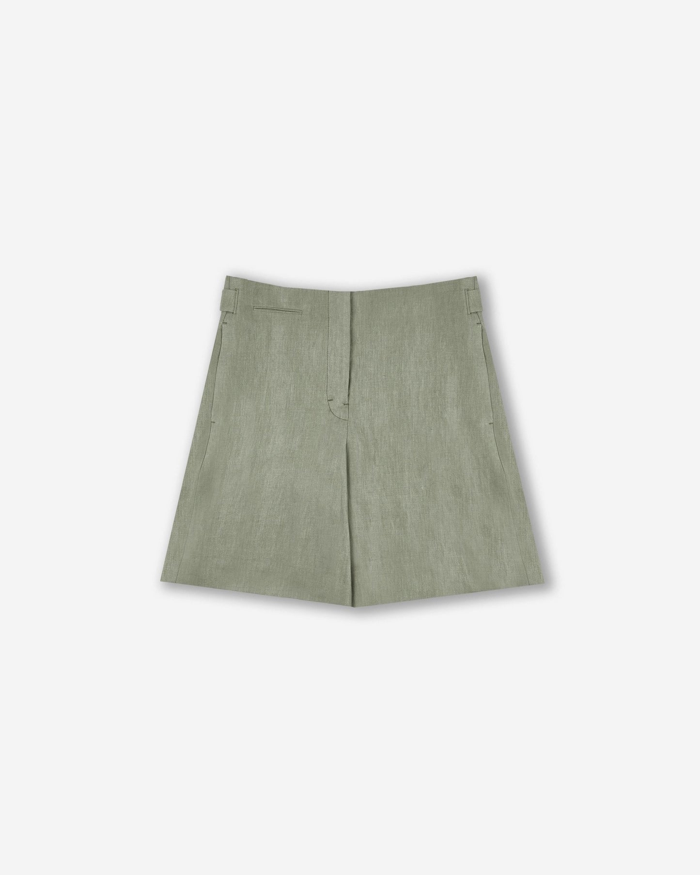 Linen is one of the world's oldest textile fibres. Centuries of innovation and research have consolidated its prominent role in women's dress. Much favoured for its subtly iridescent appearance, it is lightweight yet resilient and extremely pleasant to wear throughout the day. Here, it is used in Bermuda shorts with a sartorial allure, perfect for creating originally stylish combinations, even in the hottest weather. There is also a jacket fashioned in the same fabric, for a refined suit effect.