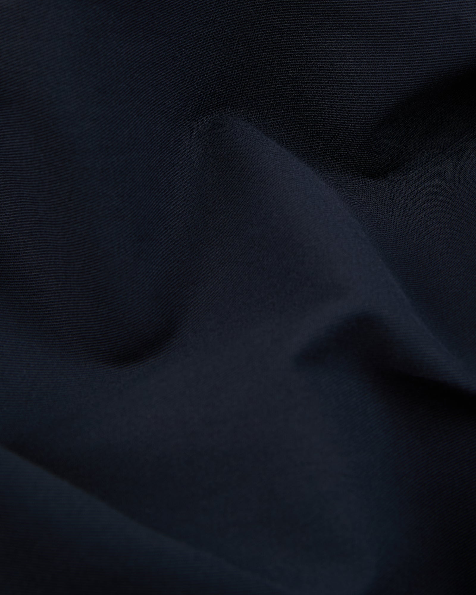 Cotton crepe is a hallmark fabric of the summer season, recognisable for its subtly crinkled texture and its dry, refined feel. The yarn's distinctive construction gives the surface a subtle, three-dimensional texture, lending the fabric breathability and lightness. Here it is used on a tapered-fit style featuring strong sartorial details such as the double front pleat and the side adjusters. The trousers can be paired with the overshirt made of the same fabric.