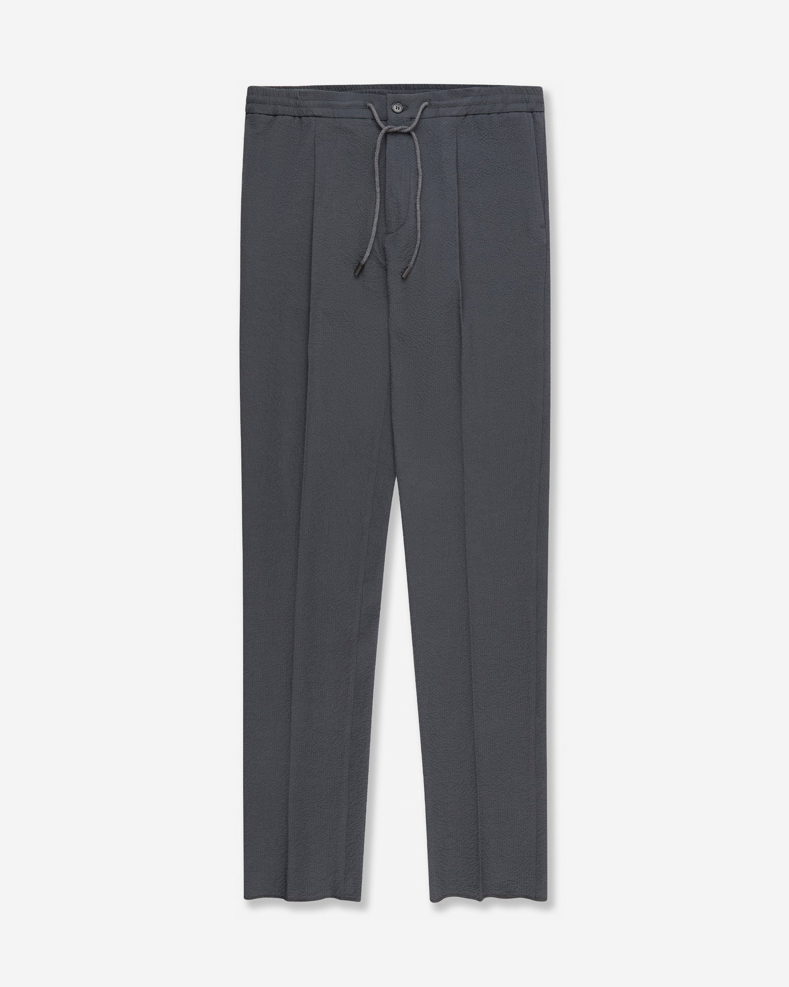Unrivalled comfort, in a style that combines sartorial flair with details designed for comfort. The comfortable tapered fit is accentuated by the belt construction, with elastic and drawstring. The iconic seersucker look emphasises the casual essence of the garment. The trousers can be combined with the jacket in the same fabric.