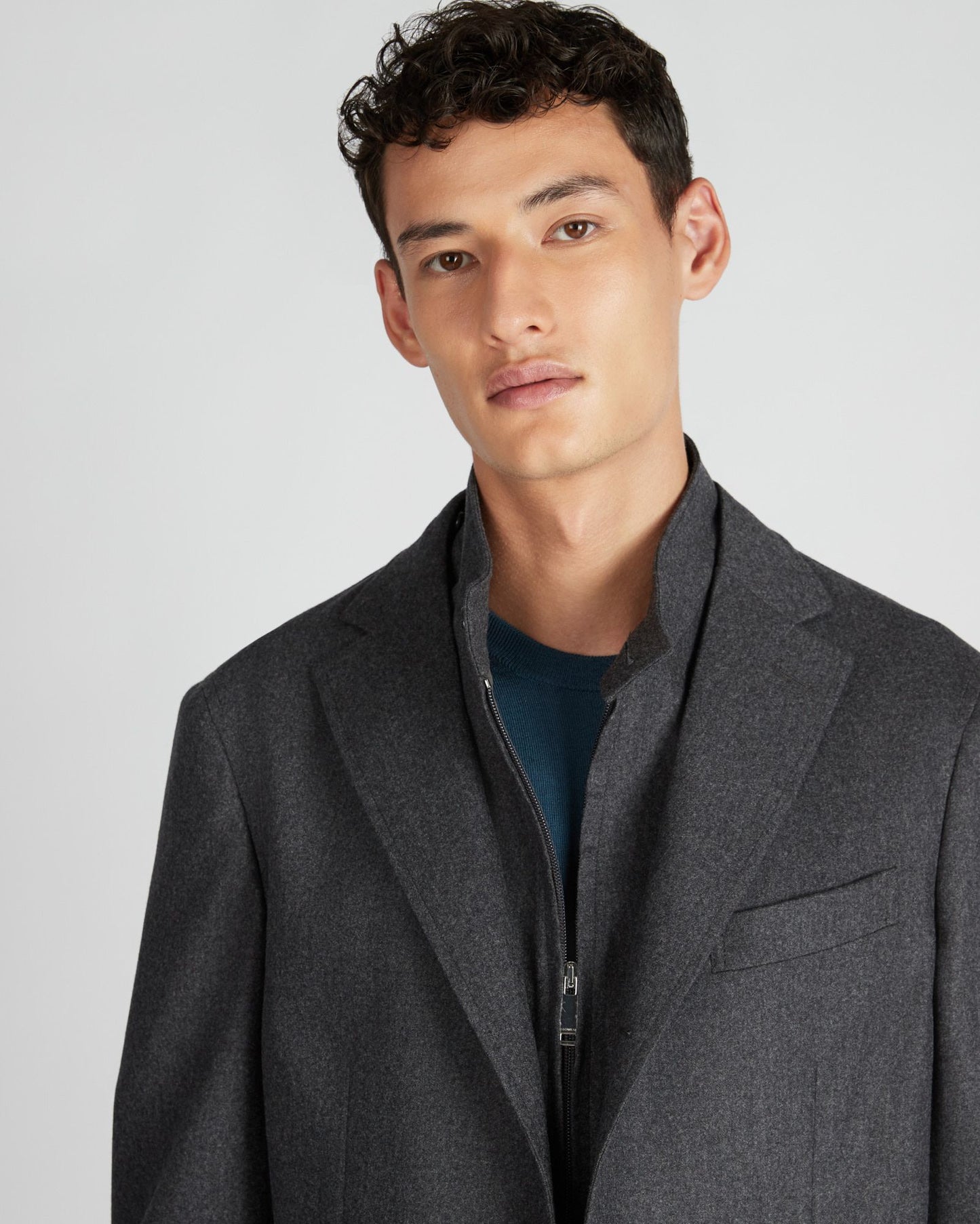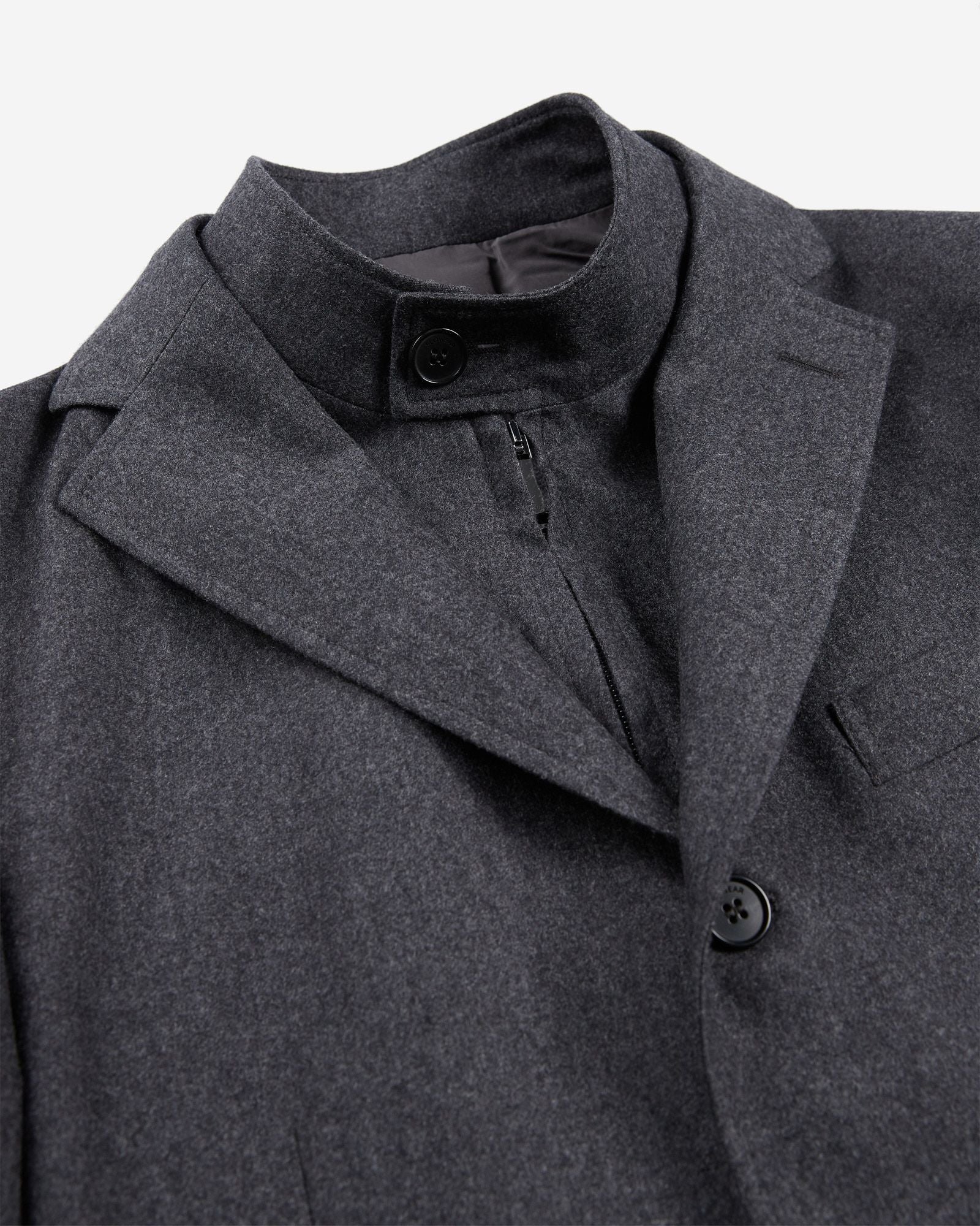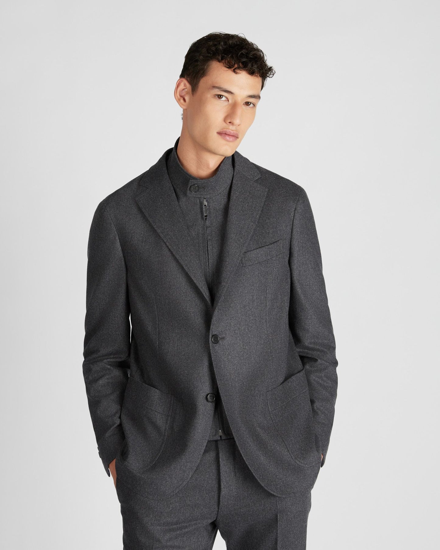 The quality of the materials and the refinement of exclusive models. In short, it is the expression of contemporary tailoring, bringing fresh rhythm to the wardrobe. Soft, warm wool meets the silkiness and lightness of cashmere to create a sophisticated yet functional winter garment. The fabric has been produced using a certified process, minimising harmful chemicals at all stages of production. The jacket, highly functional thanks to a chest panel that can be easily removed when needed using dedicated zips, can be paired with trousers made from the same fabric, creating an outfit of exceptional stylistic refinement.