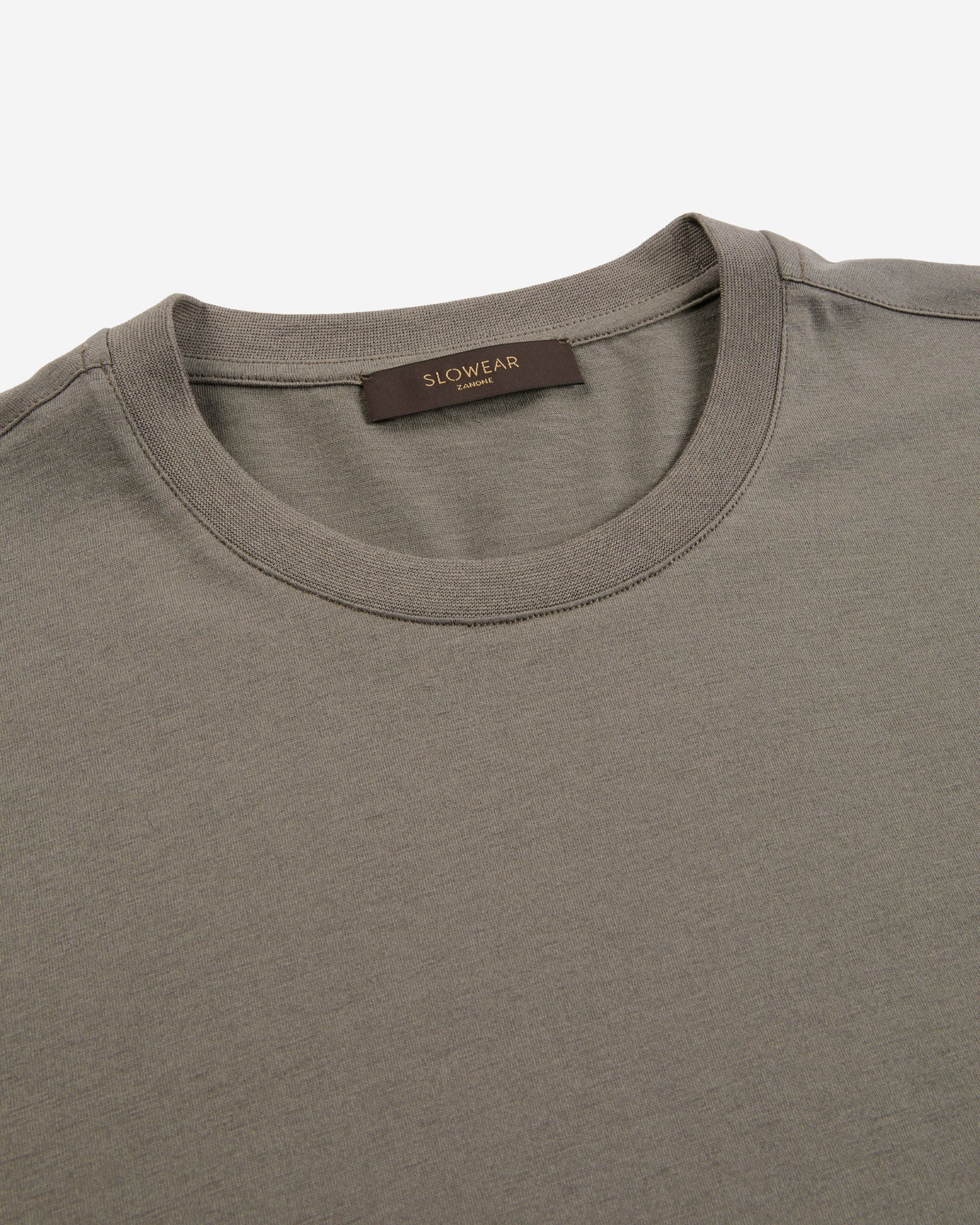 Sophisticated taste and technical mastery bring this T-shirt to life, a true must-have for your seasonal wardrobe. The cotton and silk fabric is created using a technique known as intimate blending: rather than two finished threads being woven together, the two yarns are skilfully worked and intertwined to create the starting thread. High-quality production that adds further originality to the garment, giving it a distinctive sheen combined with a soft, pleasant touch.