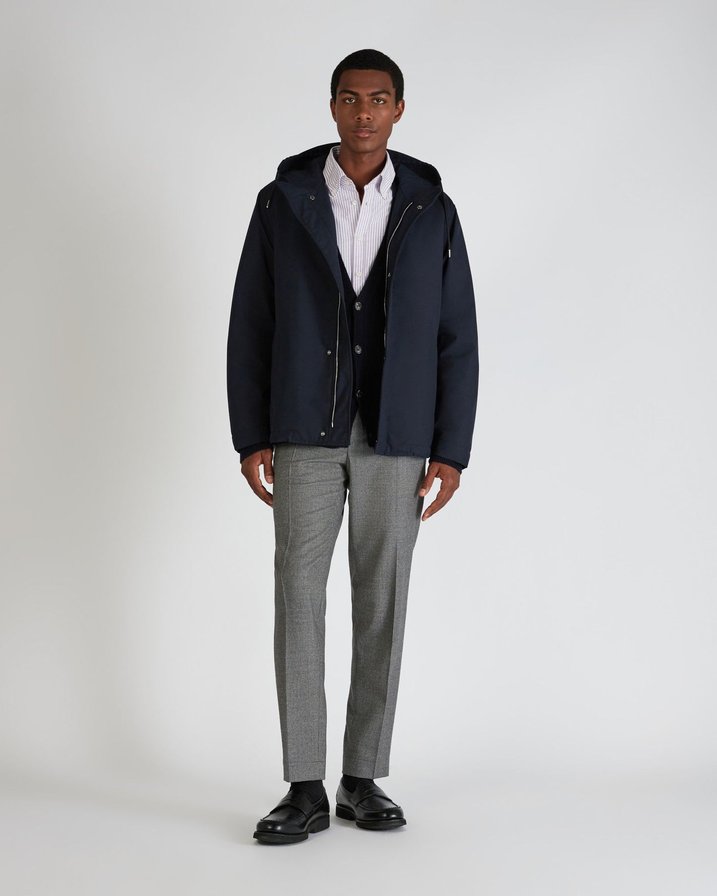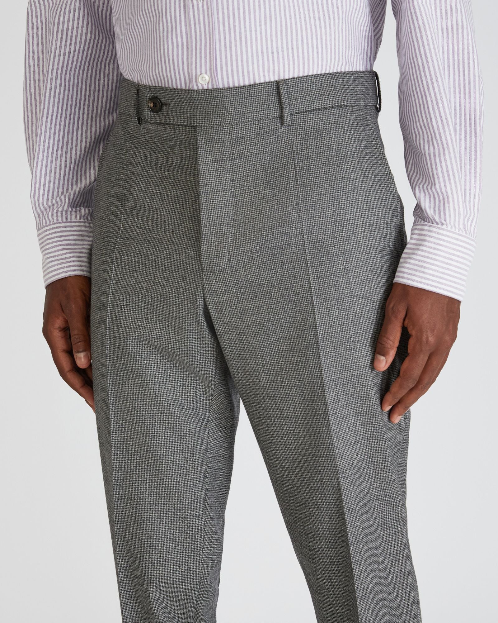 Contemporary elegance with a touch of personality. These tapered-fit wool trousers showcase a delicate micro-pattern that enhances the look while keeping it light, perfect for those who appreciate understated distinction. The wool fabric offers all the natural qualities of the fibre: breathable warmth, resistance to creasing and a soft feel. The absolute merit of the garment lies in the technical construction of the waistband: externally, the trousers present as a refined tailored garment, while internally, exclusive details help make it a true "flex pant". The elastic side panels inserted inside the waistband provide maximum comfort, enhanced by a special reinforcement that lends the waistband both support and elasticity. All this without altering the external appearance, for unprecedented versatility of use.