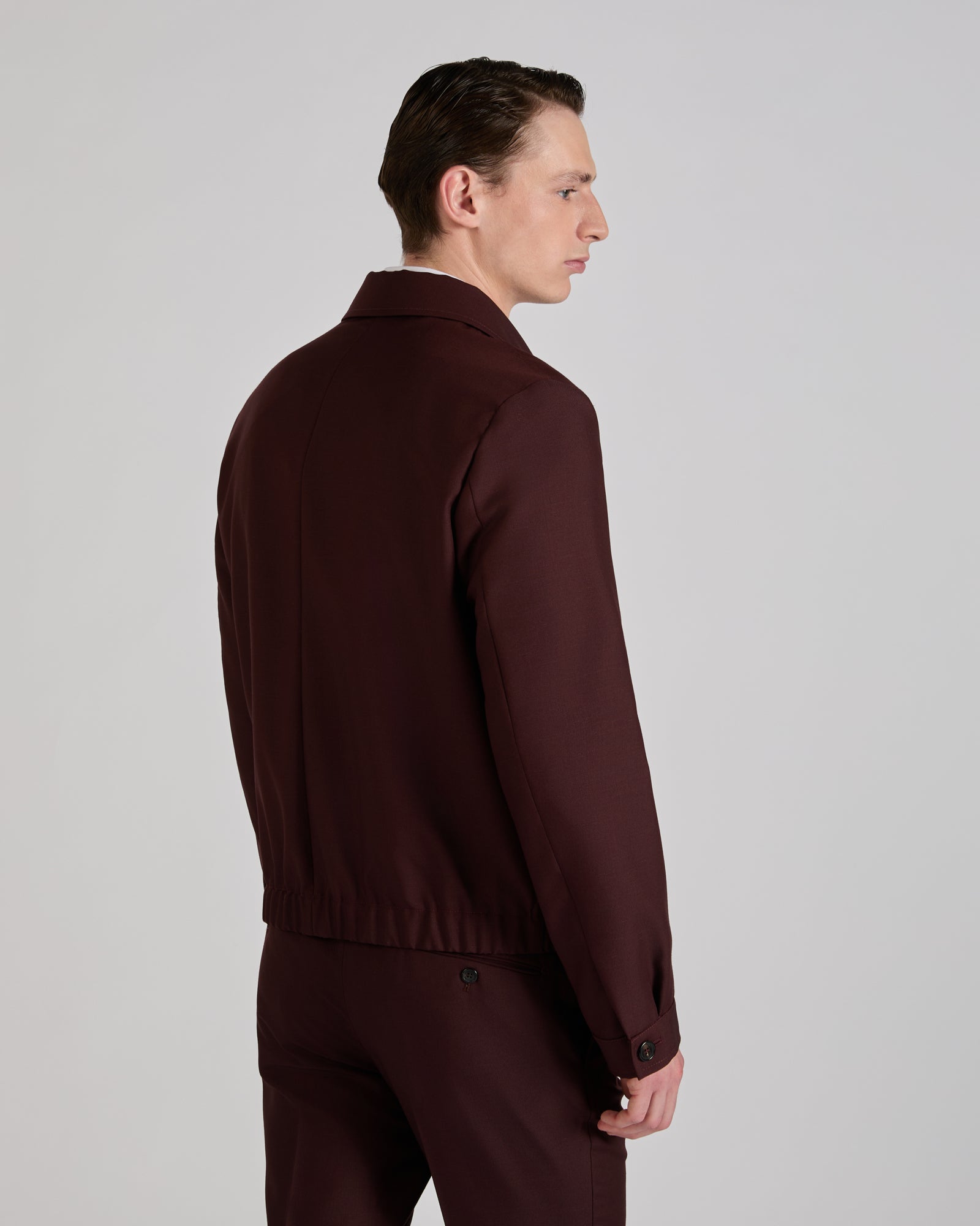 The Evening capsule collection is crafted to infuse tailored sophistication and the luxury of exclusive fabrics into your special moments of celebration and festivity. The chosen fabric is a blend of wool and mohair, a luxurious fibre highly valued for its silky sheen, softness, and durability. The chosen model is a bomber jacket with a smart casual flavour, which can be paired with trousers made from the same fabric, for a combination that redefines the very concept of a suit.