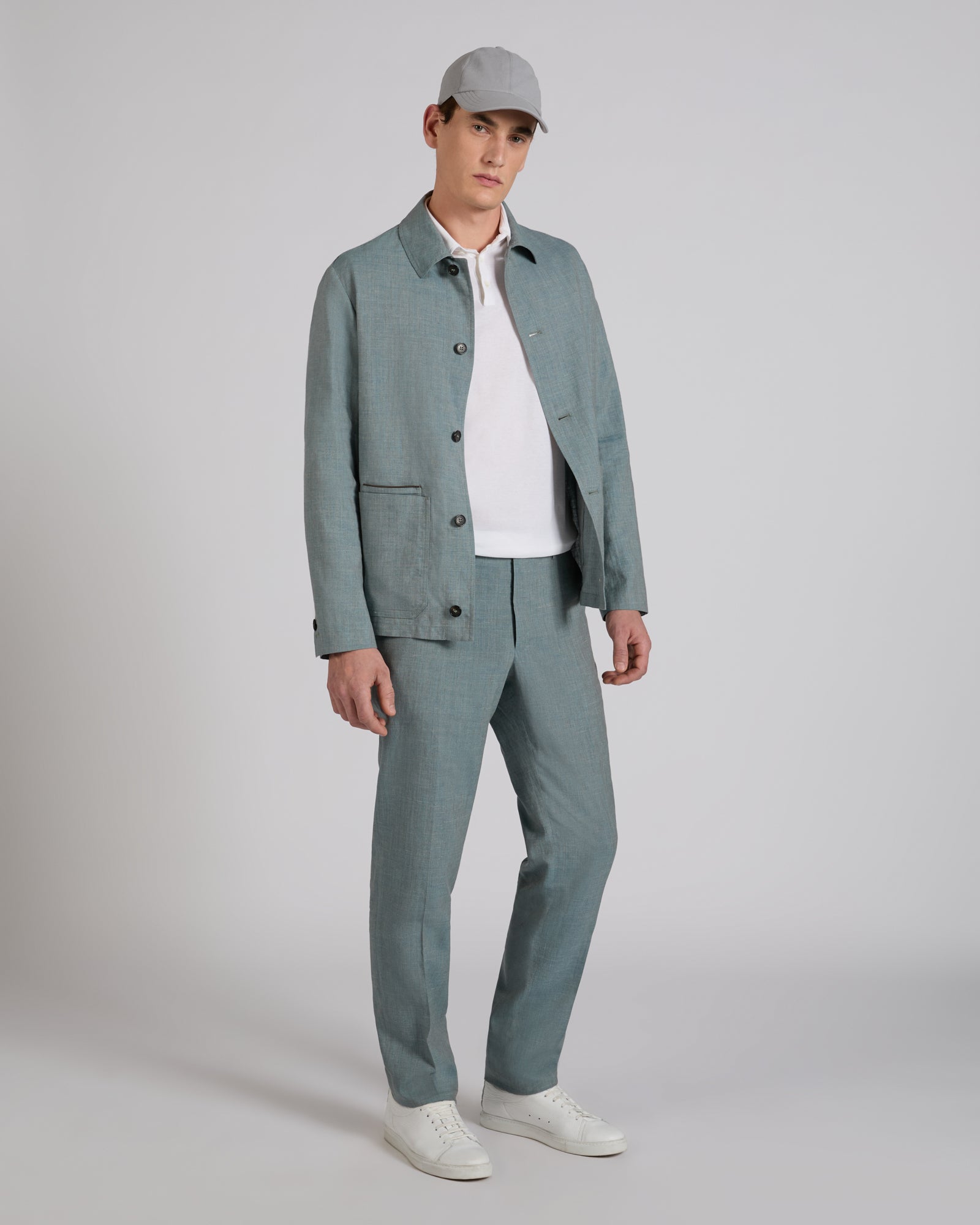 One of the brand's most iconic and well-loved styles, these regular-fit trousers combine the essential character of tailored design with the comfort of a fit that enhances the silhouette. Here it is crafted from a soft, breathable canvas of linen, wool and silk – a combination that brings out the best in each fibre, resulting in a highly refined material that is soft to the touch, with a subtle sheen and visible slubs that create a three-dimensional effect. The trousers can be combined with the jacket in the same fabric.