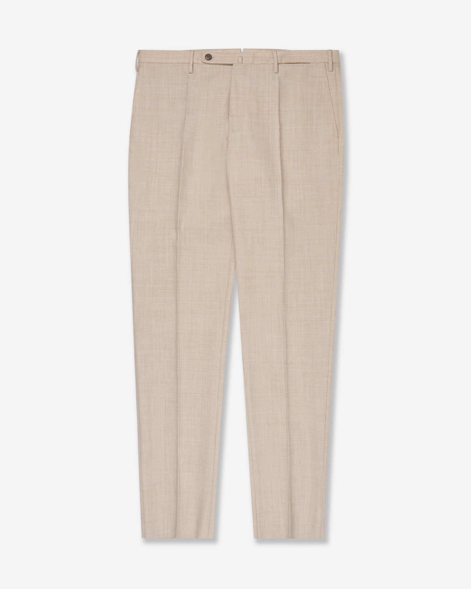 The quality of the tailoring and the undisputed value of the materials chosen are the hallmarks of these summer trousers, which are sure to add style to your seasonal wardrobe. The fabric chosen is a three-ply wool: the yarn is woven several times to create a woollen fabric that is very soft yet robust, less prone to creasing while remaining comfortable. Moreover, the fabric has been produced through a certified process that ensures worker safety and respect for the environment at all stages of production. Here it is used with Slowear's iconic regular fit for extreme versatility and comfort. The trousers can be paired with the Primo bomber jacket made from the same fabric.