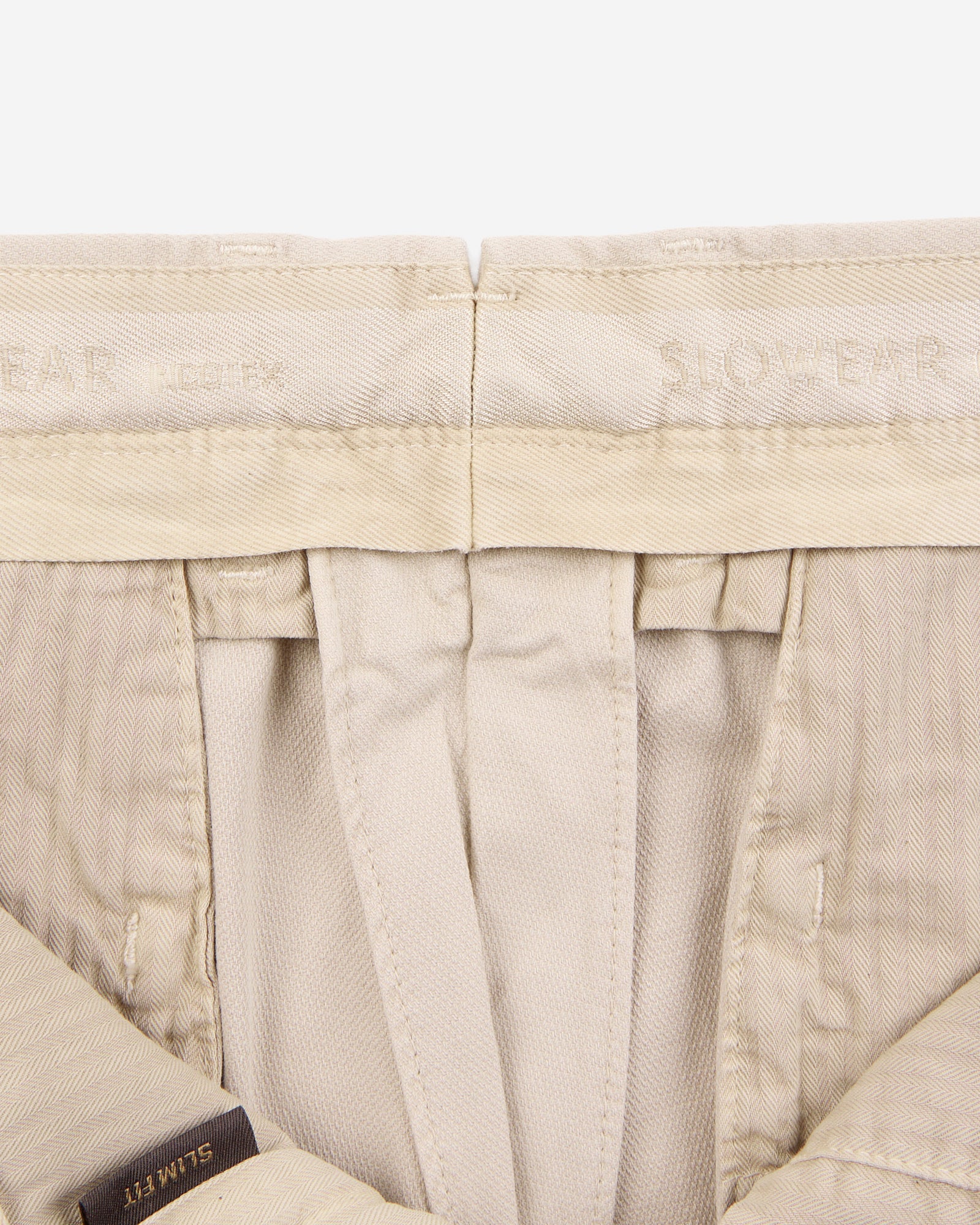 • The trousers feature a self-locking zip, front slash pockets, and double-welt back pockets with a flap that can be left in sight or inserted inside the pocket.