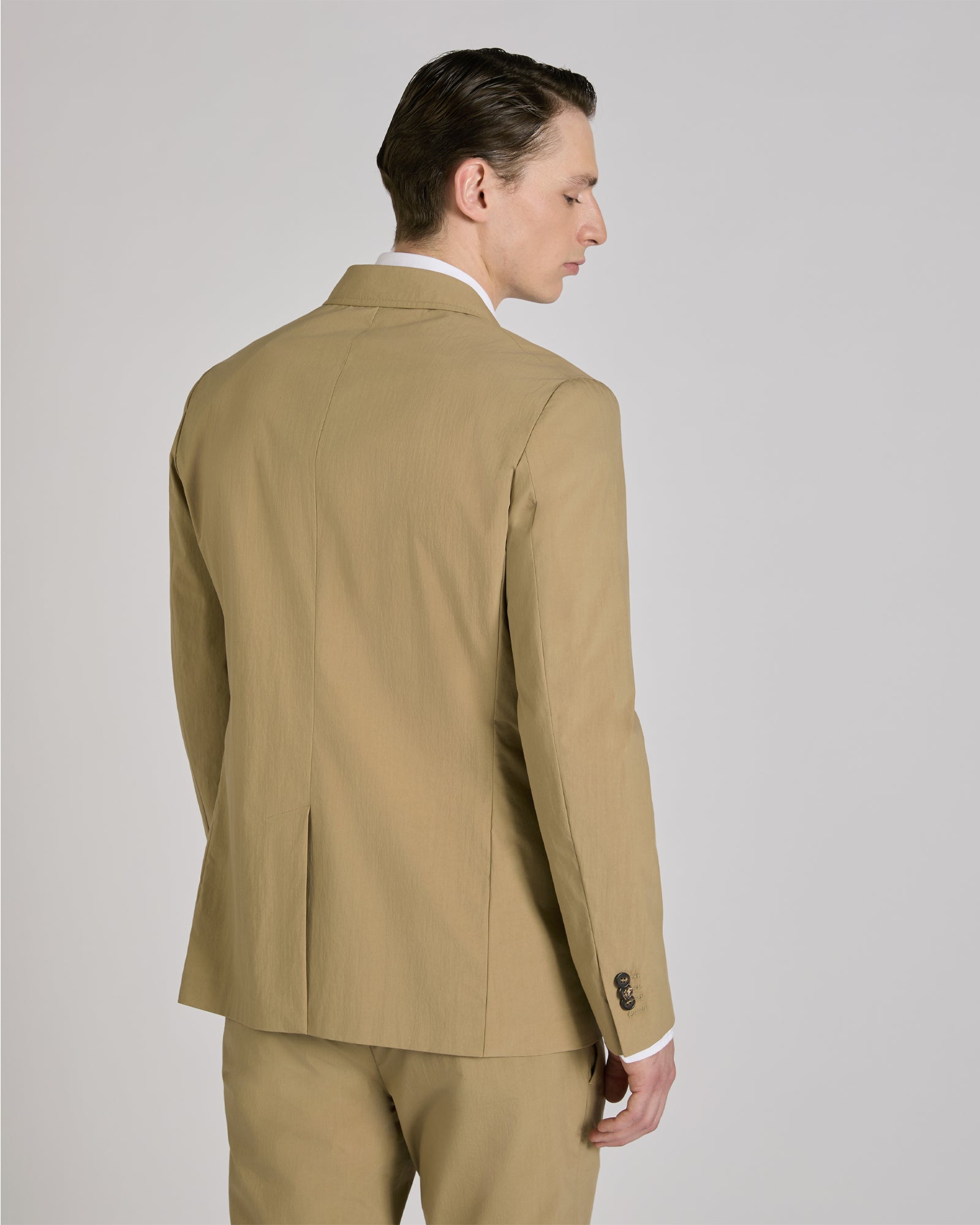 The Slowear Teknosartorial line represents the natural evolution of supreme tailoring skills combined with next-generation technical fabrics, drawn from sportswear and athletic wear. An exclusive offering that redefines the boundaries of the most traditional suit, delivering a style that makes no concessions when it comes to comfort. A case in point is the small capsule of Teknotela garments, of which this jacket is part. The fabric is ultra-light, breathable, crease-resistant and has a crisp, lively feel. The style combines comfort features, such as the small throat latch at the collar for fastening and added protection, with a cut that evokes classic tailoring. Paired with the trousers, this jacket creates a refined casual suit.