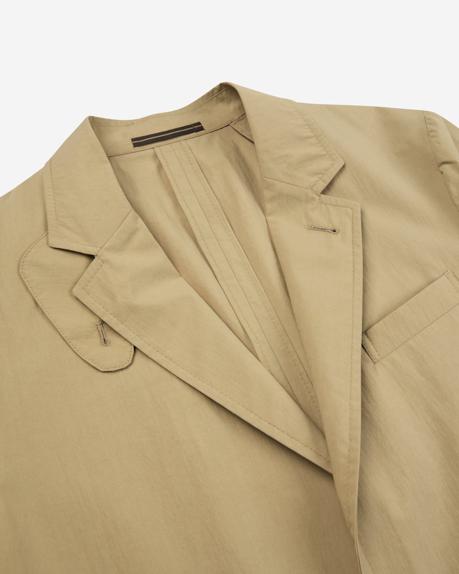 • The jacket is unlined with lined sleeves and has a single-breasted two-button closure, flap pockets, a small chest pocket, an inside pocket inserted in the placket and a small pocket, and a back vent.