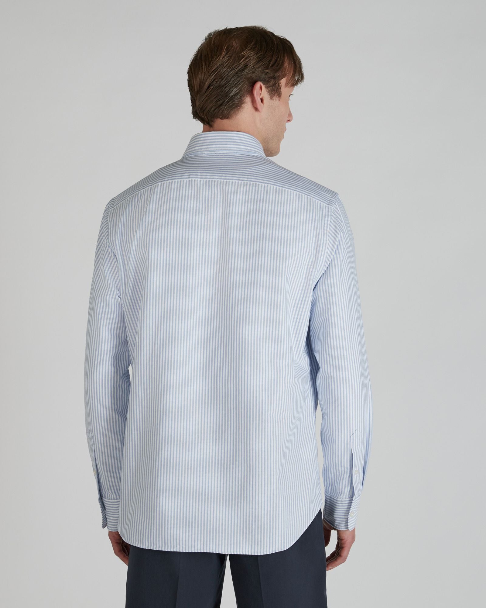 When it comes to fabrics that have made the history of men's wardrobes, the Oxford shirt undoubtedly deserves a place of honour. The squaring that distinguishes its appearance and its firm yet light and soft feel combine with characteristics of resistance and breathability. The quality of the garment is enhanced by a fabric produced through a certified process that ensures worker safety and respect for the environment at all stages of production.