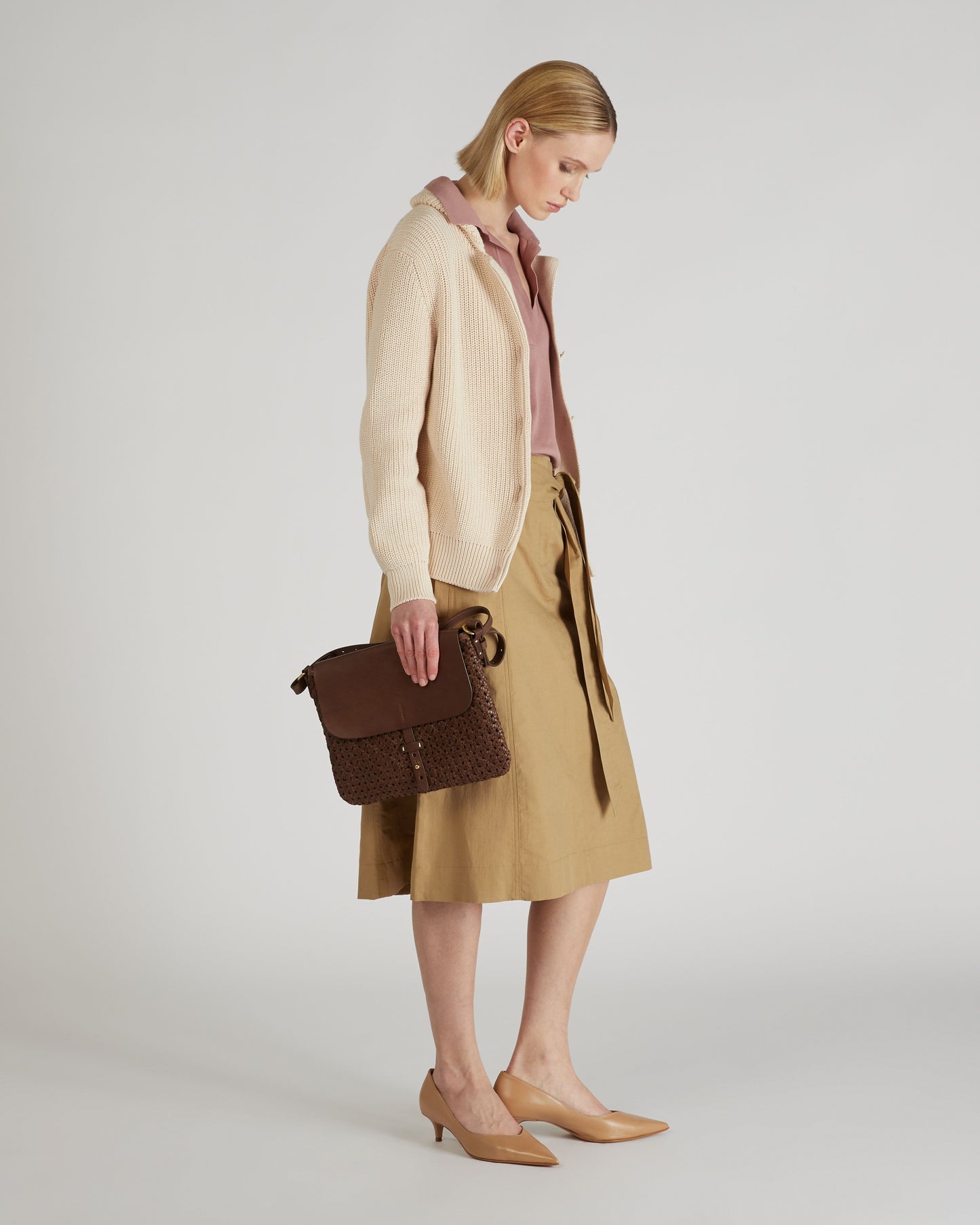 The originality of unique pieces, and the quality of Italian craftsmanship. The products designed by Massimo Palomba embody the experience and tradition of age-old skills. Like this shoulder bag with adjustable length, made of very soft leather and embellished with a fine weave.