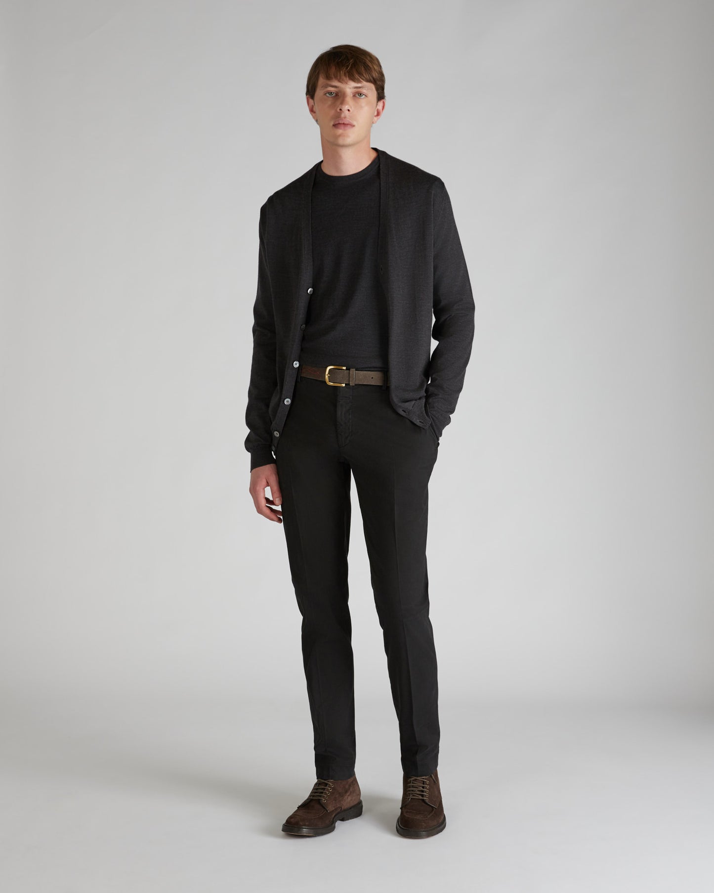 Merino wool, carefully selected from among the world's finest varieties, is enriched with a touch of Lycra. The result is a fine yarn with unprecedented strength, lightness, thermal capacity and comfort.