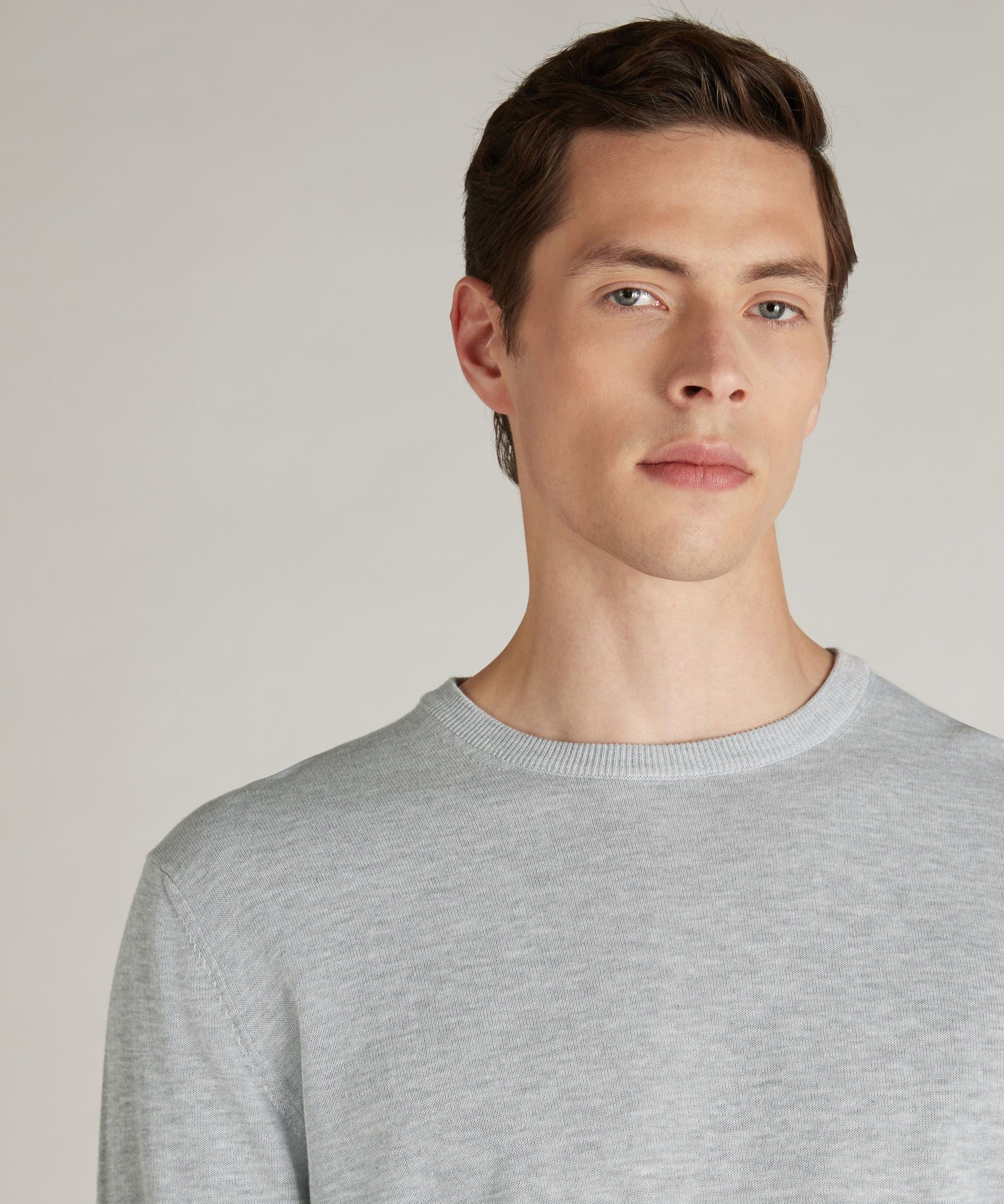 Slim-fit crew neck sweater in certified crêpe cotton