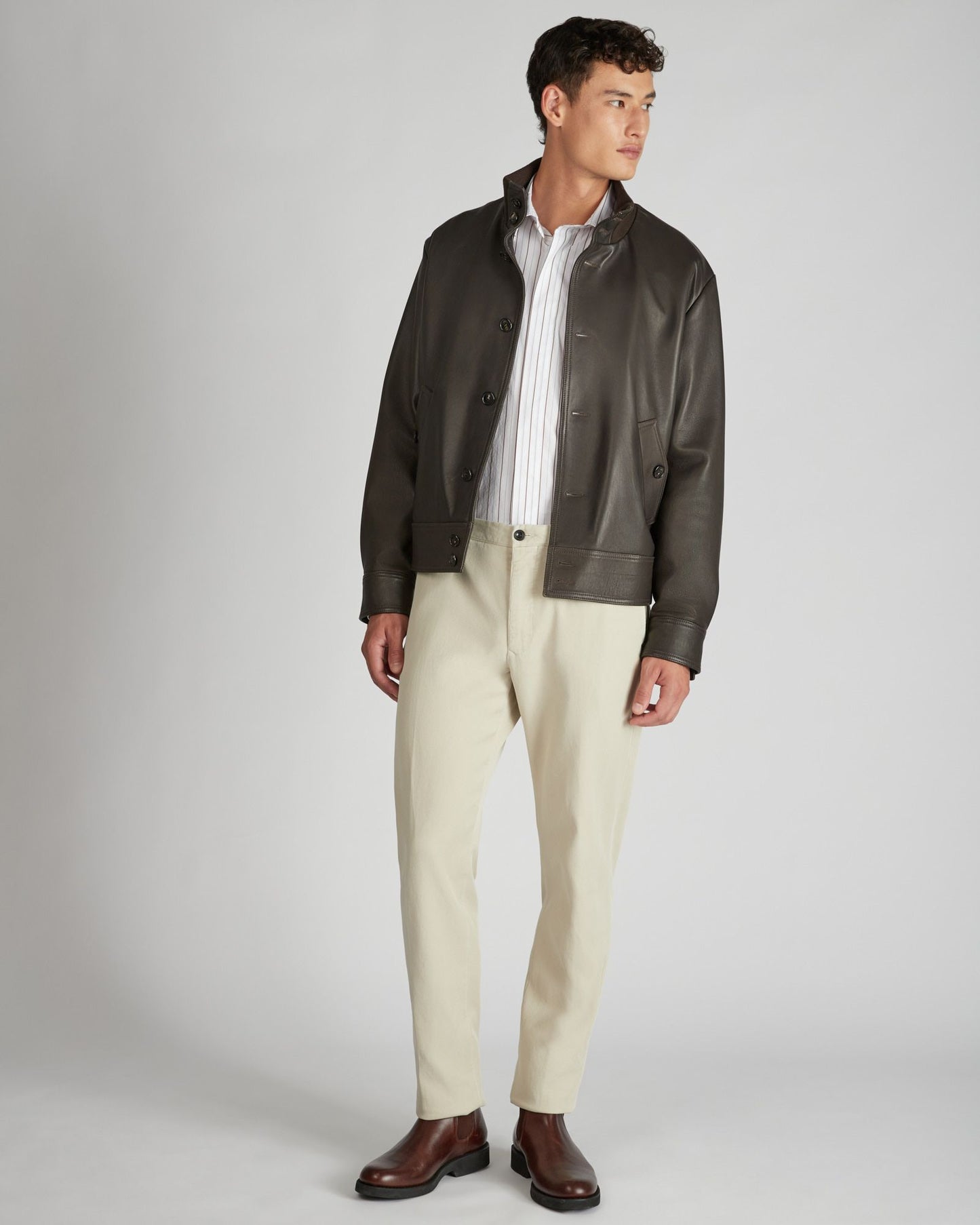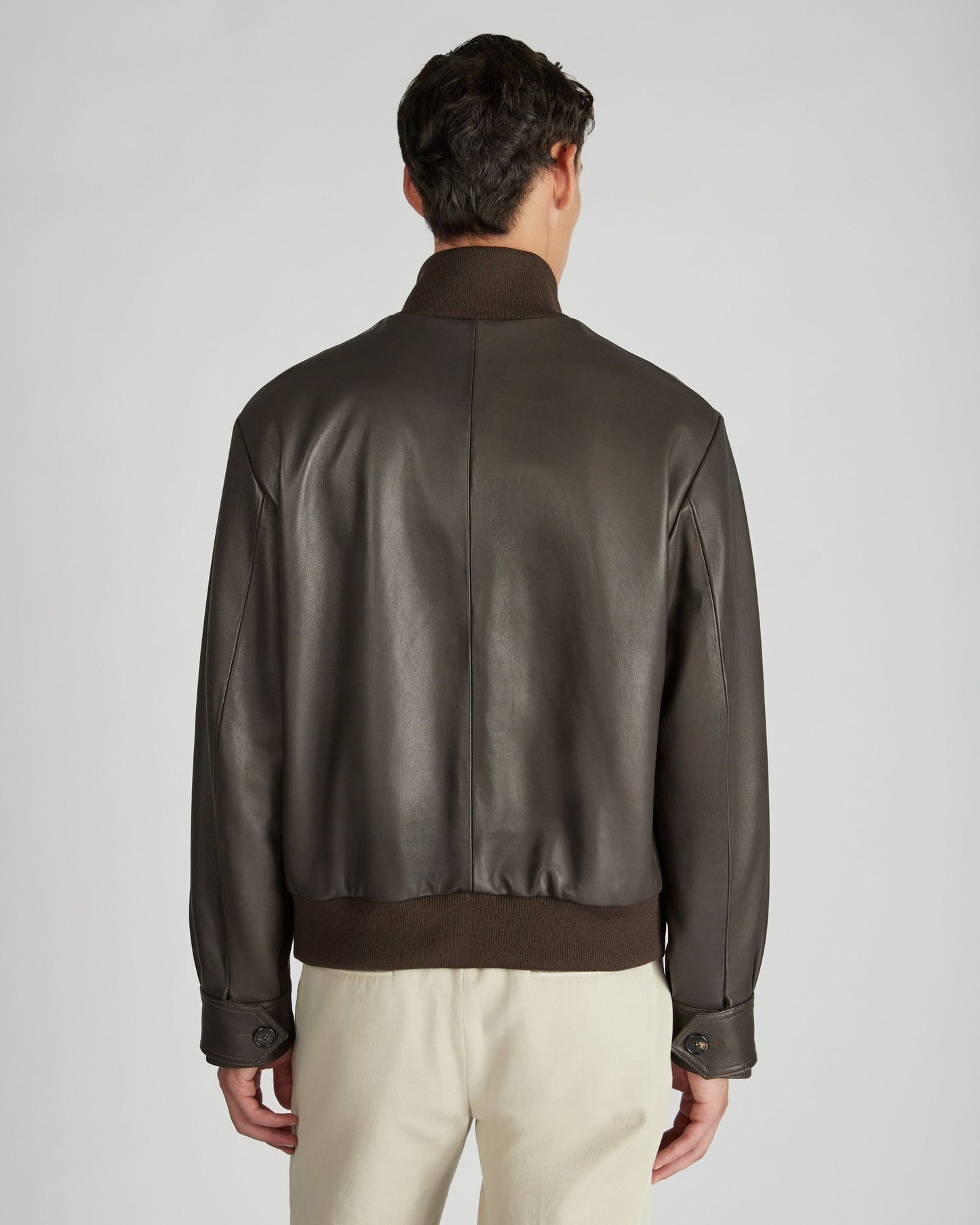 Originally designed to provide protection at high altitudes, the aviator leather jacket has become, over time, a symbol of character and freedom, also thanks to its widespread presence in pop culture. Here we offer a tailored "Made in Italy" reinterpretation, crafted from a very soft and shiny nappa leather, featuring details such as inverted flap pockets that highlight its origins.