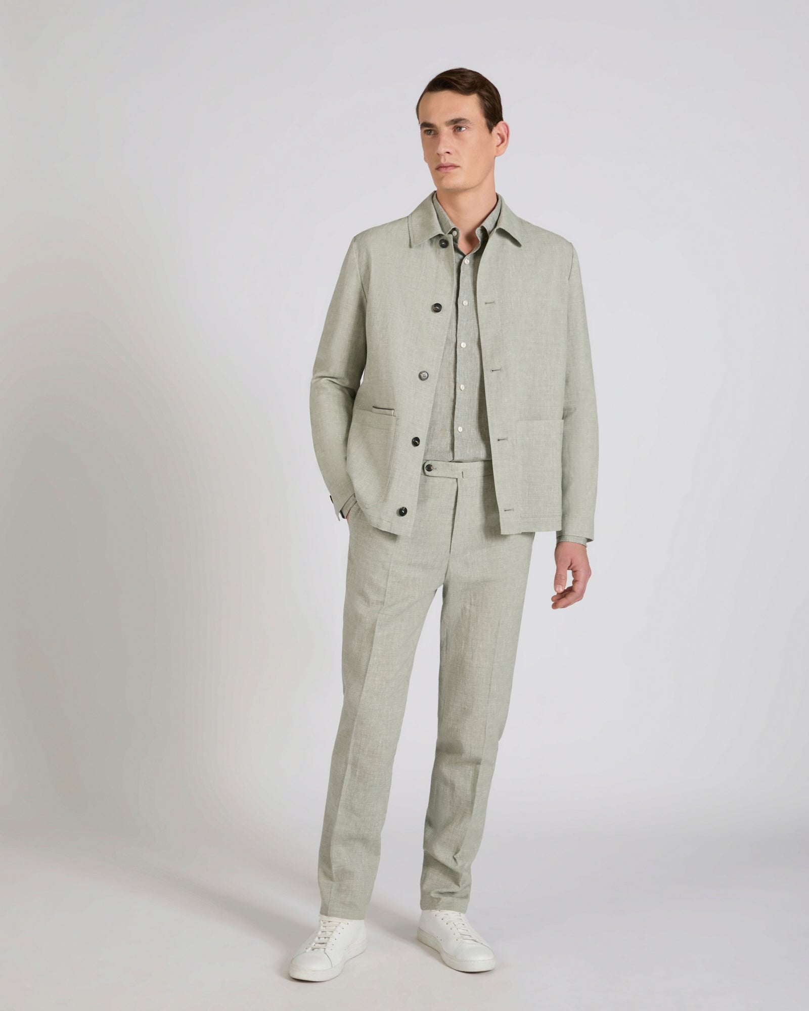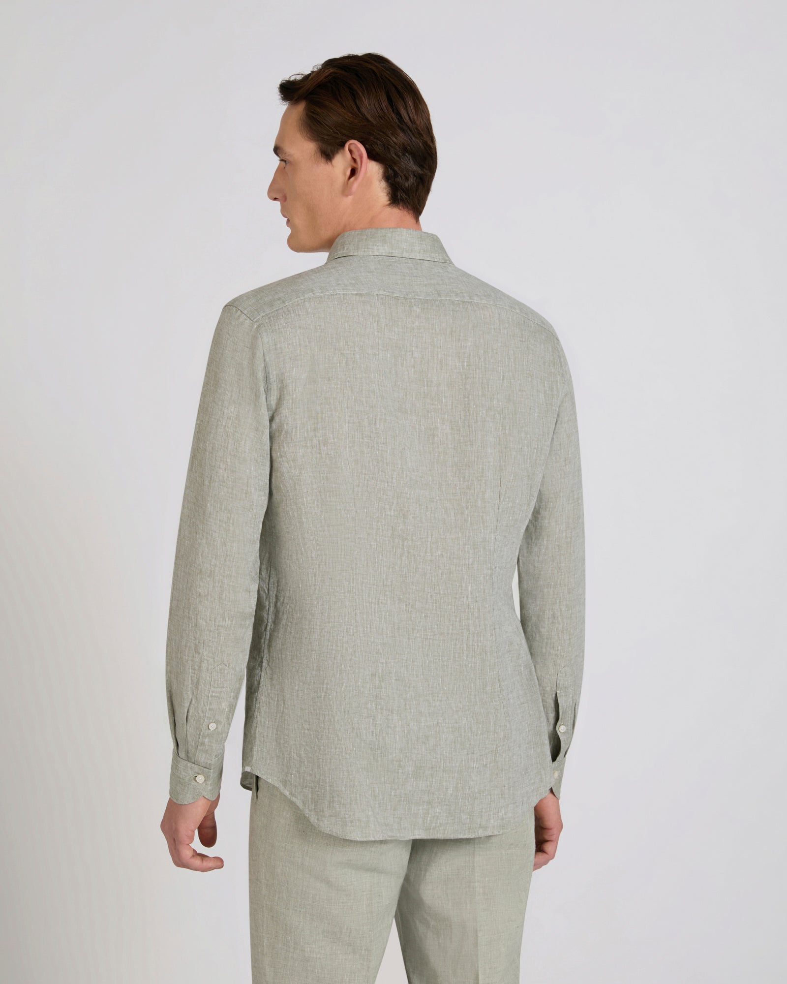 Linen is one of the world's oldest textile fibres. Centuries of innovation and research have ensured its role as one of today's premium shirt fabrics: lightweight yet durable, with a slightly iridescent appearance, it is very pleasant to wear throughout the day. Here it is used on a regular-fit shirt and proposed in refined shades, a perfect expression of summer lightness.