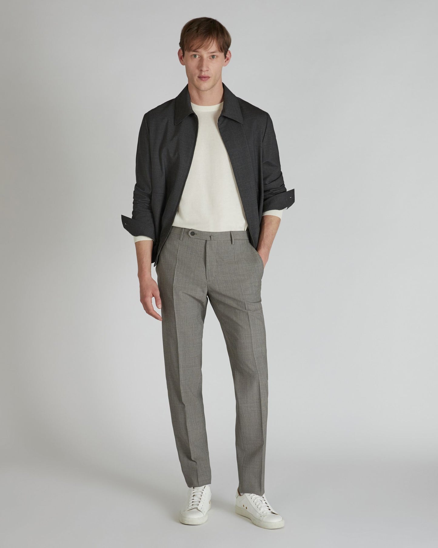 A harmonious combination of style and functionality, this outerwear garment is the ideal ally in the transitional seasons. The tailored construction enhances the details. The fabric is a super lightweight and stretch wool canvas that is extremely comfortable and produced through a certified process that guarantees the safety of people and the environment and the minimisation of harmful chemicals at all stages of production.