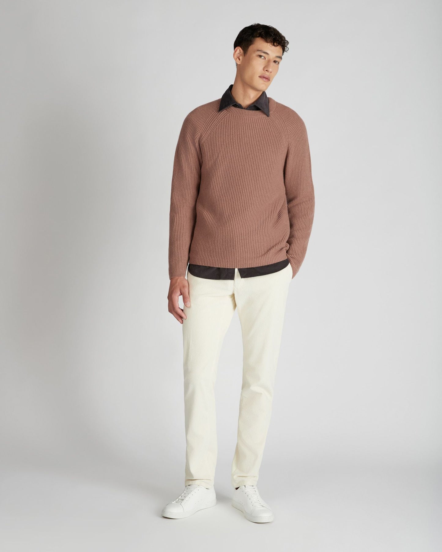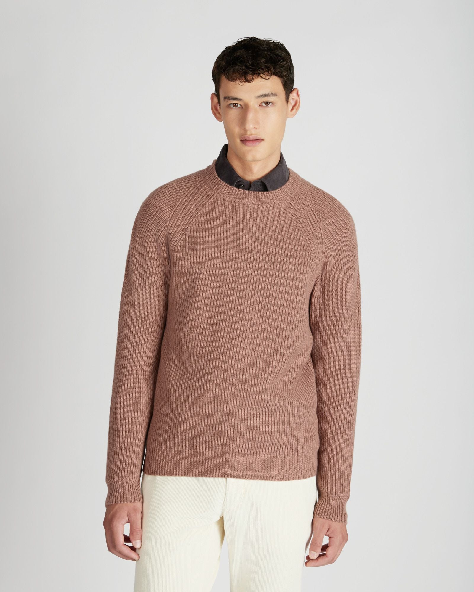 Essential yet refined, this pure cashmere crew neck combines comfort, softness, and style in a piece designed to last over time. The raglan shoulder provides a smoother, more sporty silhouette, enhancing the fit and highlighting the body's natural movement. The half English rib knit adds character and depth to the stitch, creating a rich yet lightweight texture that highlights the quality of the fibre.