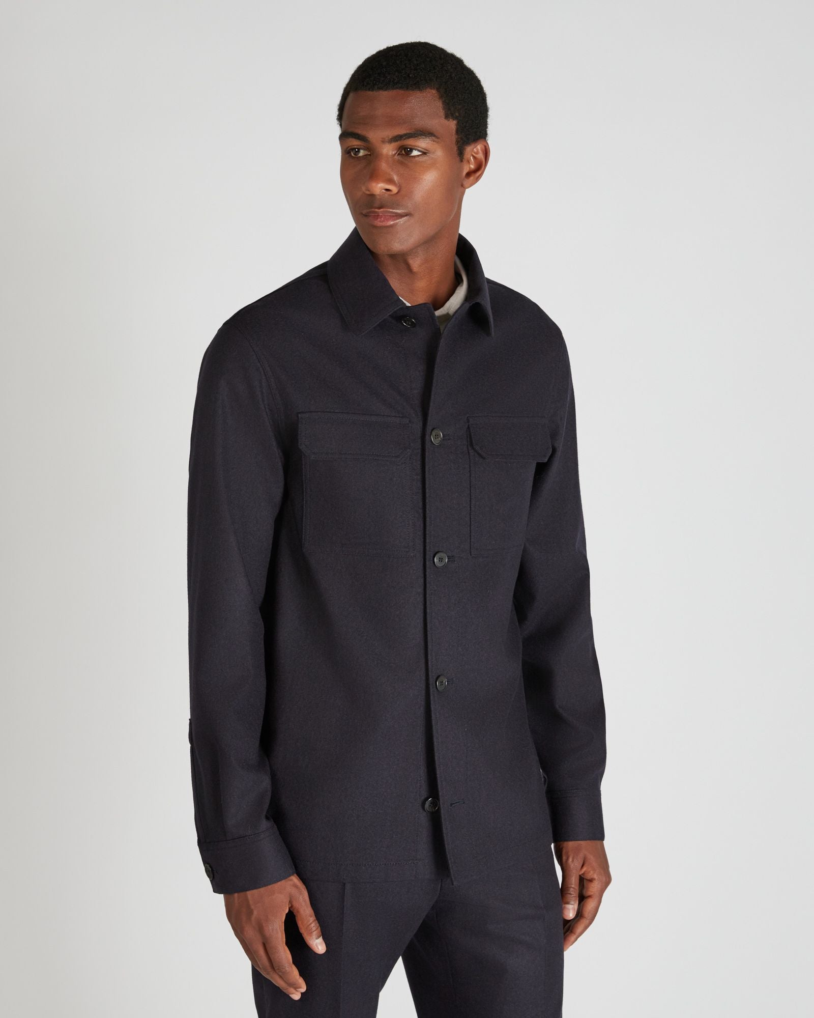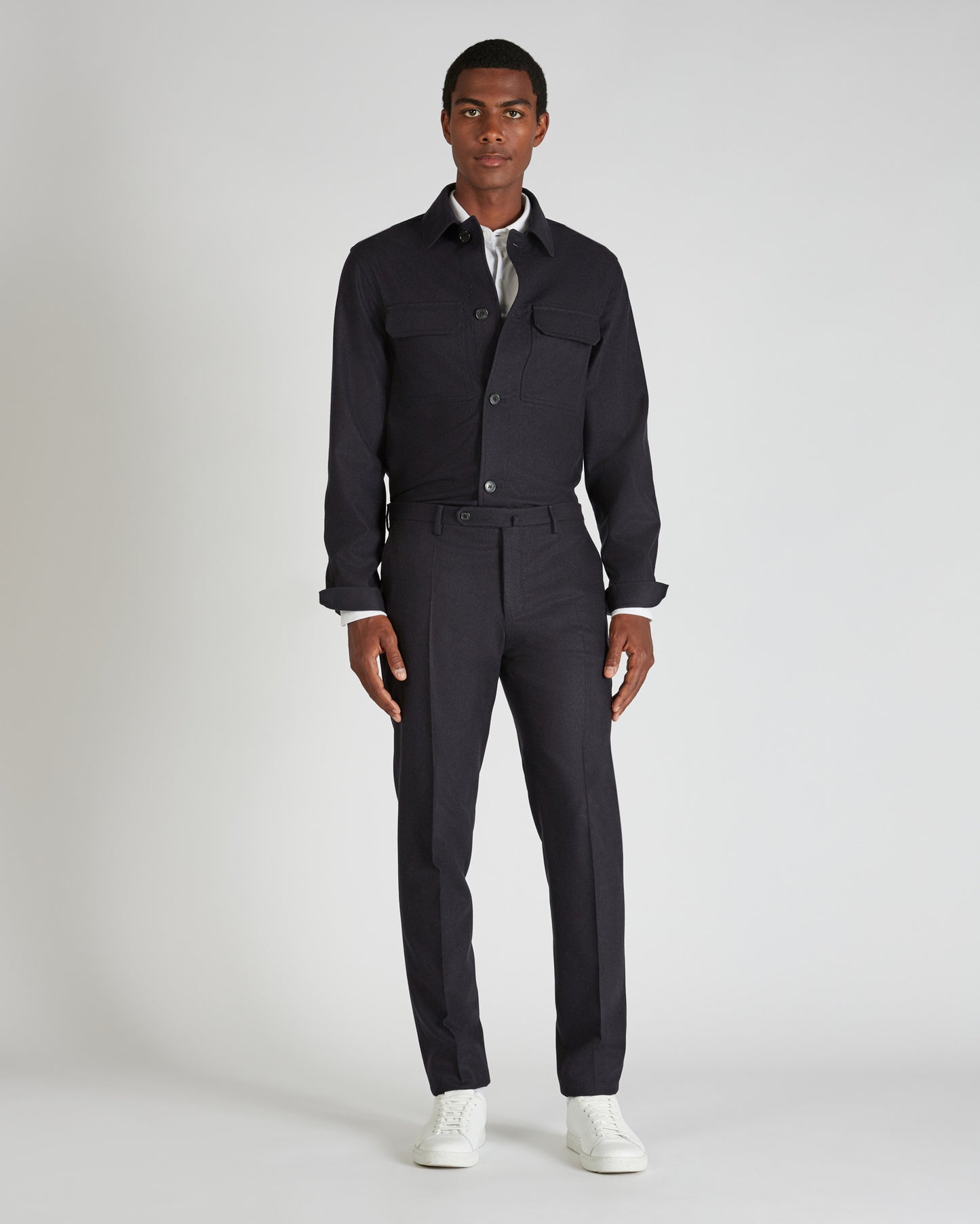 The quality of the materials and the refinement of exclusive models. In short, it is the expression of contemporary tailoring, bringing fresh rhythm to the wardrobe. Soft, warm wool meets the silkiness and lightness of cashmere to create a sophisticated yet functional winter garment. The fabric has been produced using a certified process, minimising harmful chemicals at all stages of production. The blouse, an elegant sartorial upgrade of casual outerwear, pairs perfectly with the trousers crafted from the same fabric, resulting in an outfit of outstanding style and sophistication.