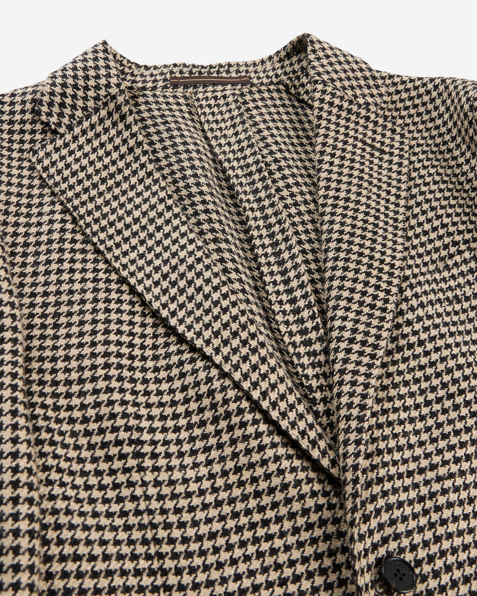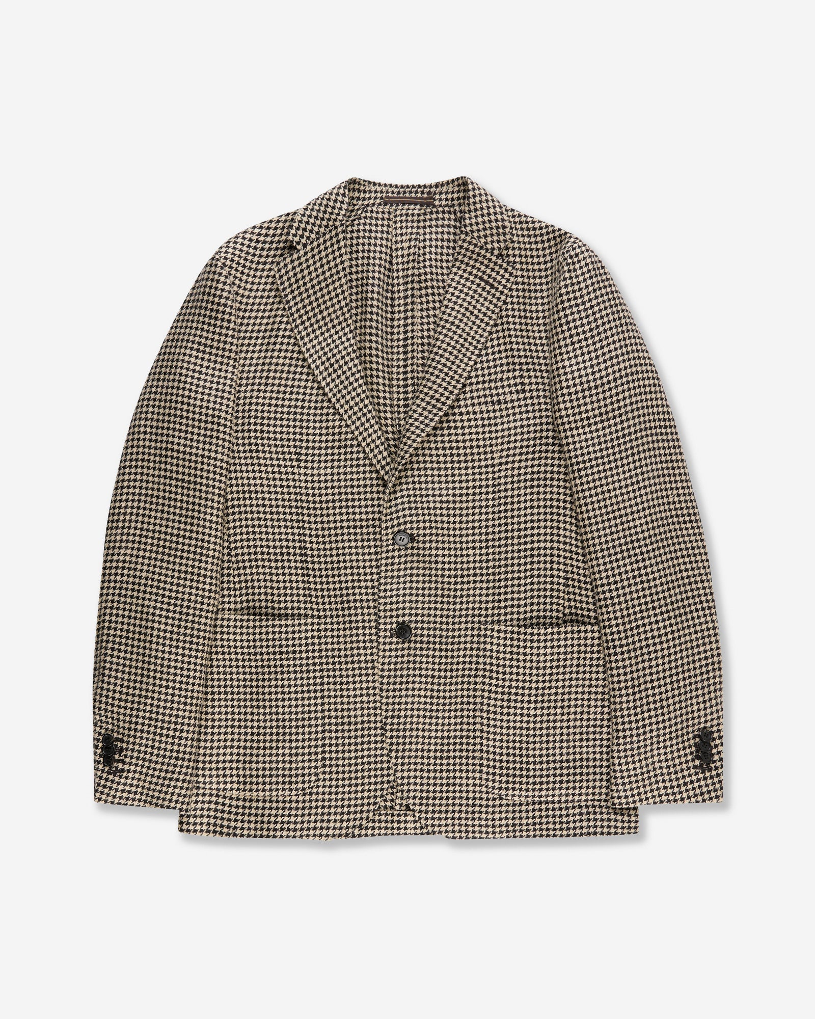 • The jacket is unlined and has a single-breasted two-button closure, pockets and a breast patch pocket, a double back vent, and a double inside pocket.