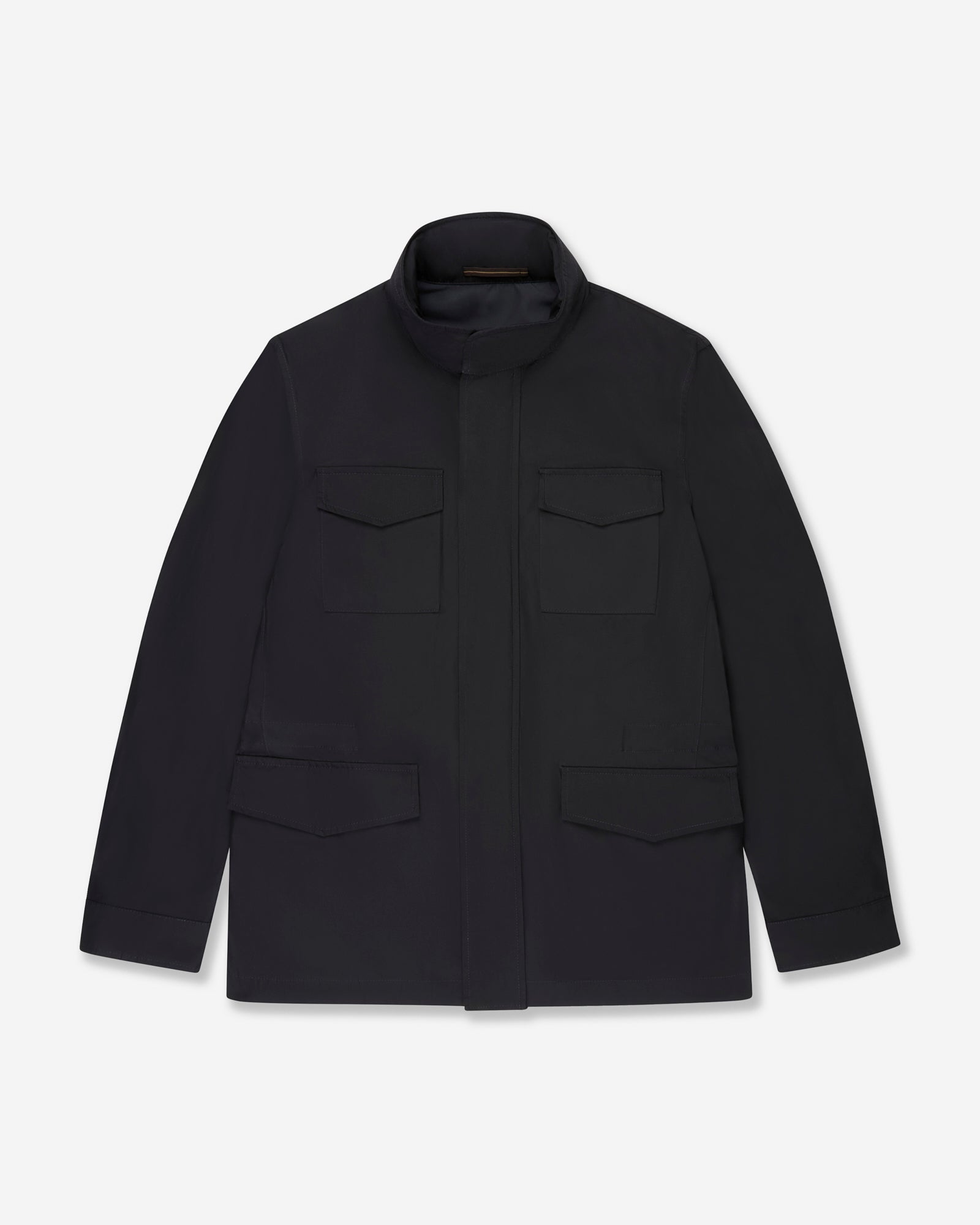 From its military origins, to becoming a key style item of famous actors in major international films, the Field Jacket is one of the most iconic garments in the male wardrobe. This model is freely inspired by the sketches of designer Walter Albini, who created them for the brand in the early 1970s. The designer also gave it its name, Franchigia, which we are now reintroducing as an original and distinctive feature. Here it is presented in a high-performance technical fabric, creating an outerwear piece that offers comfort and protection during the transitional seasons.