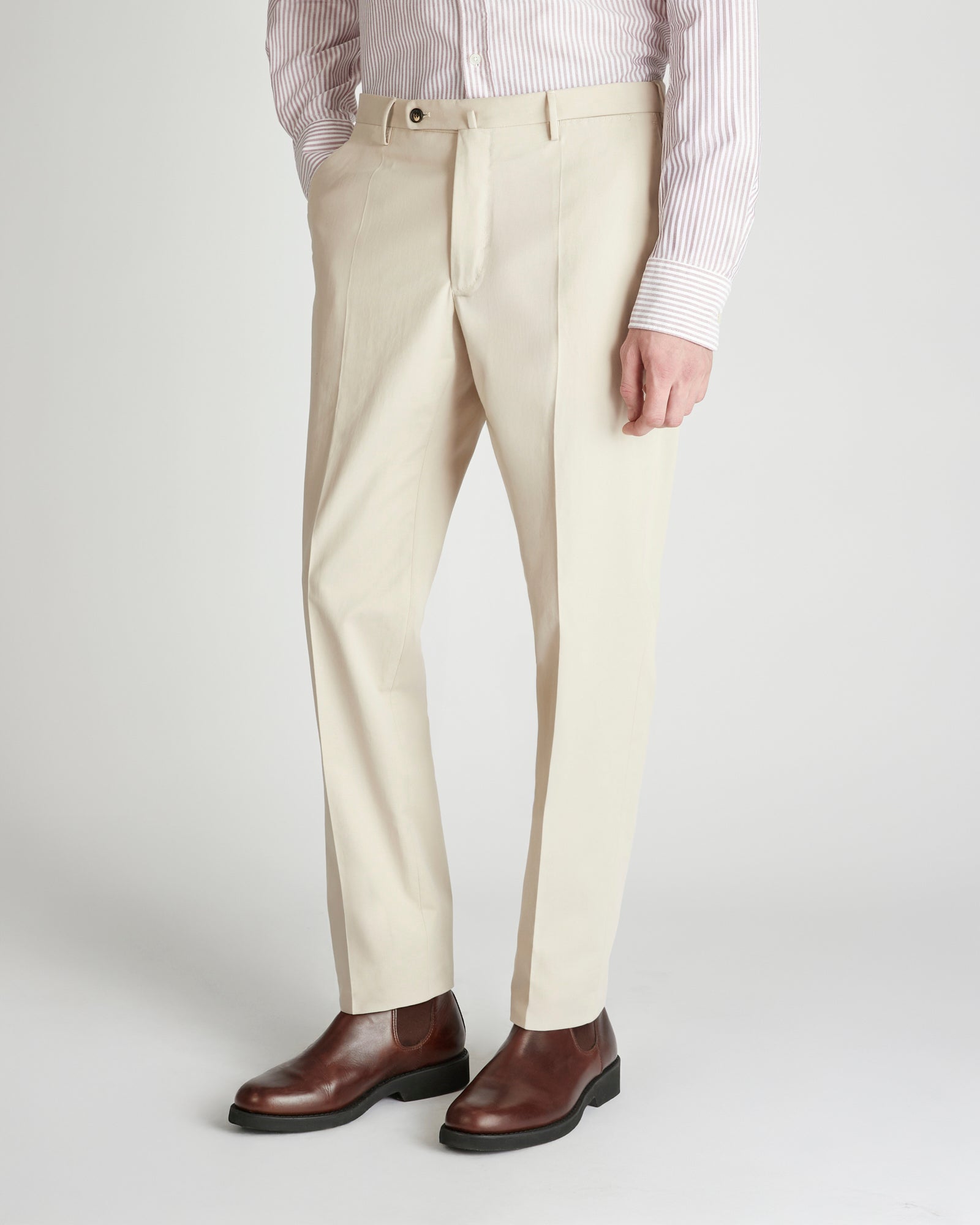 - The trouser hem is delivered ready to be hemmed.