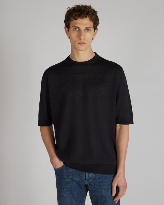 Slim-fit crew neck sweater in certified crêpe cotton