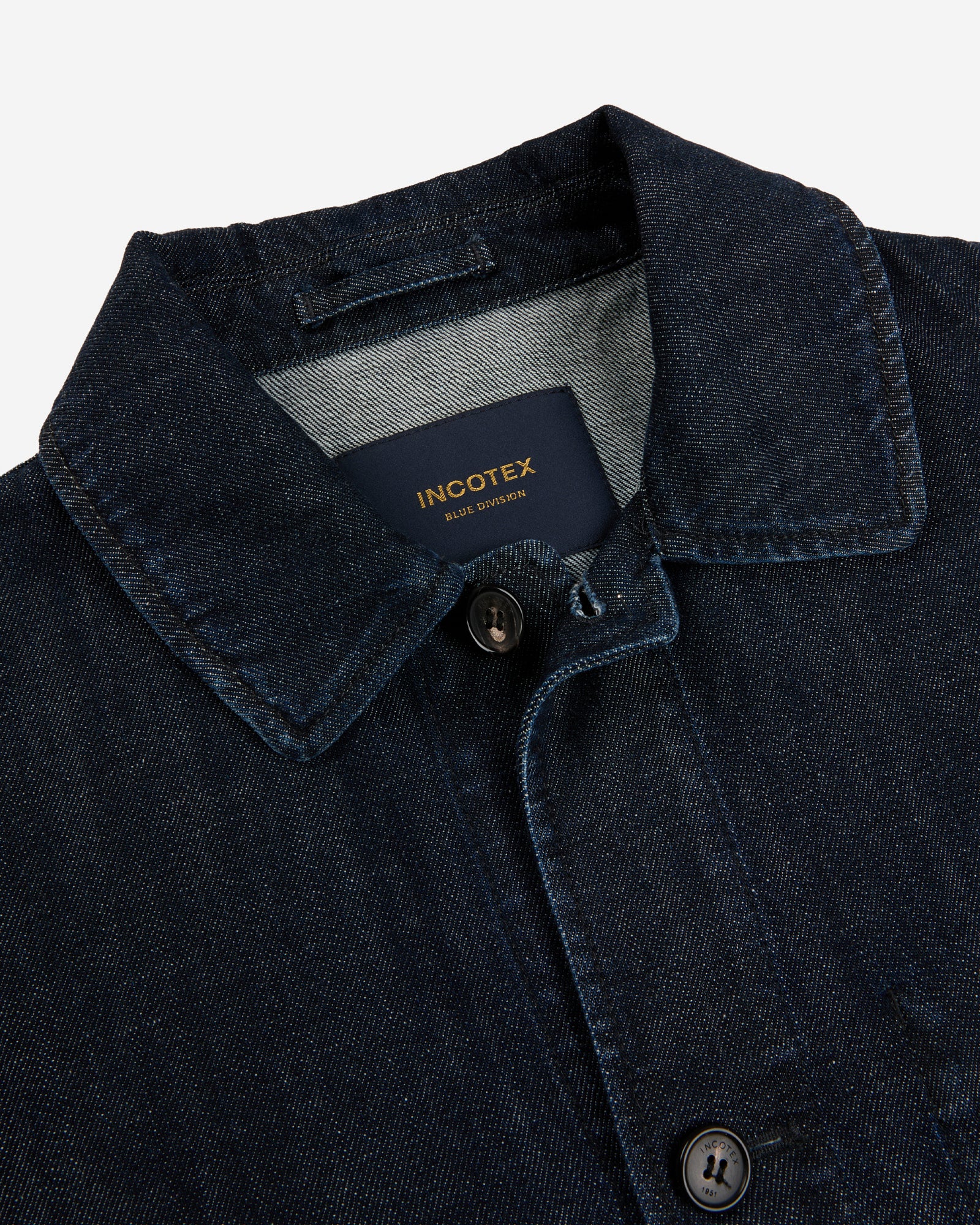 When denim meets tailoring, the result is a Made-in-Italy, five-pocket pair of trousers that redefines its very essence. This is the goal of the Incotex Blue Division brand, and the model created here is a direct expression of this. The design takes the classic elements of the chore jacket – patch pockets, clean lines and modern functionality – and reimagines them with a more tailored, polished feel. The fabric is very fine Japanese denim with an ultra-light wash that highlights the seams and details. Team the chore jacket with trousers in the same fabric.