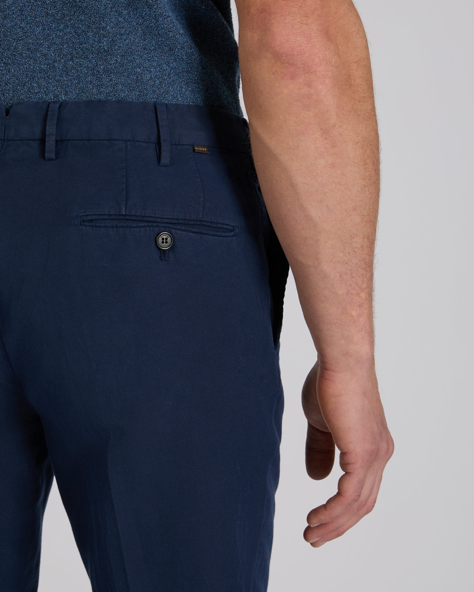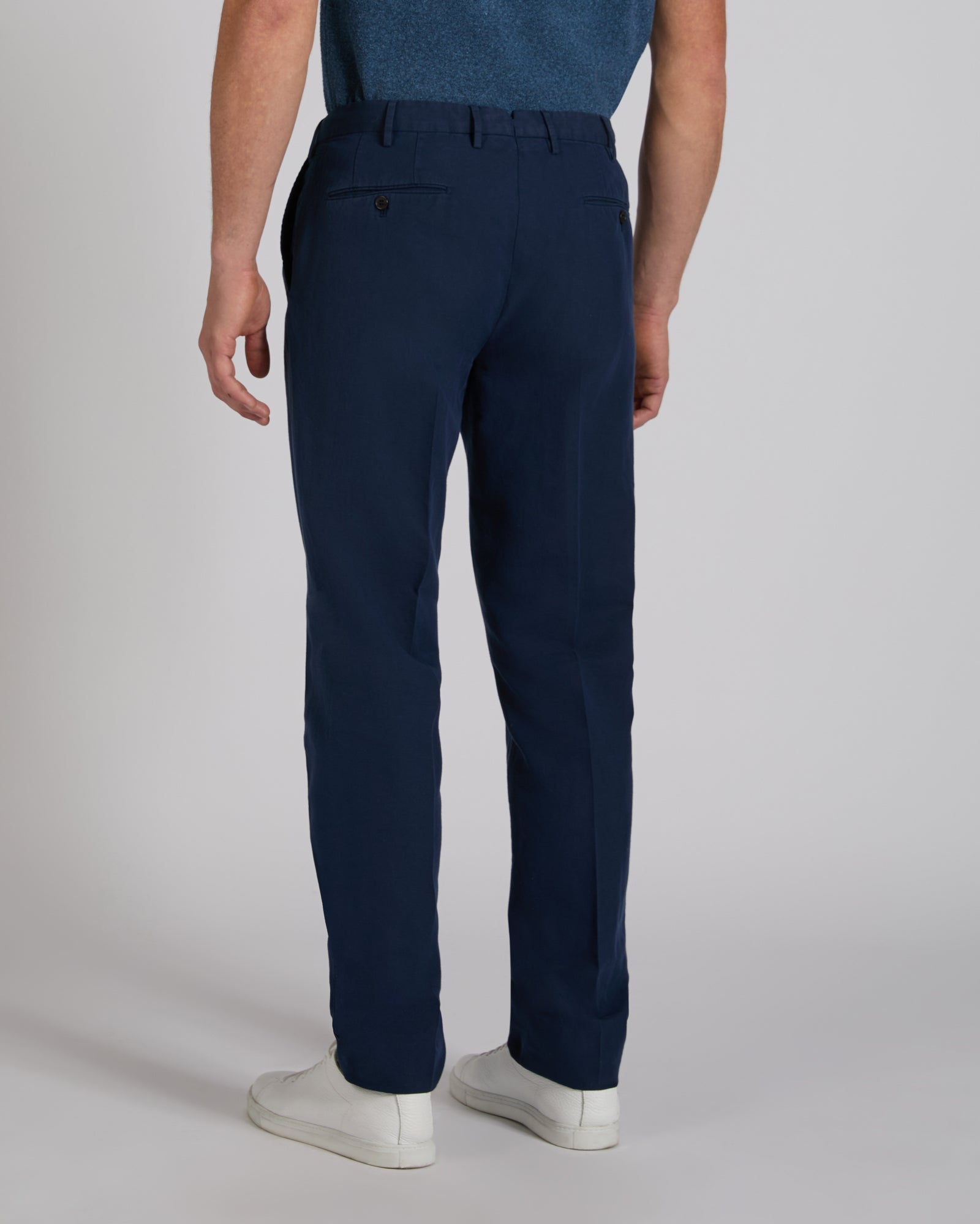 Chinolino is an innovative fabric created from a premium blend of linen and cotton: the breathable qualities of linen are combined with the softness of cotton to create cool, summery trousers. Now an iconic part of the brand's range, this refined fabric is particularly valued by our connoisseurs for its lightweight yet soft and cool feel. Here it is used on Model 39, a historic regular fit style from our collections.