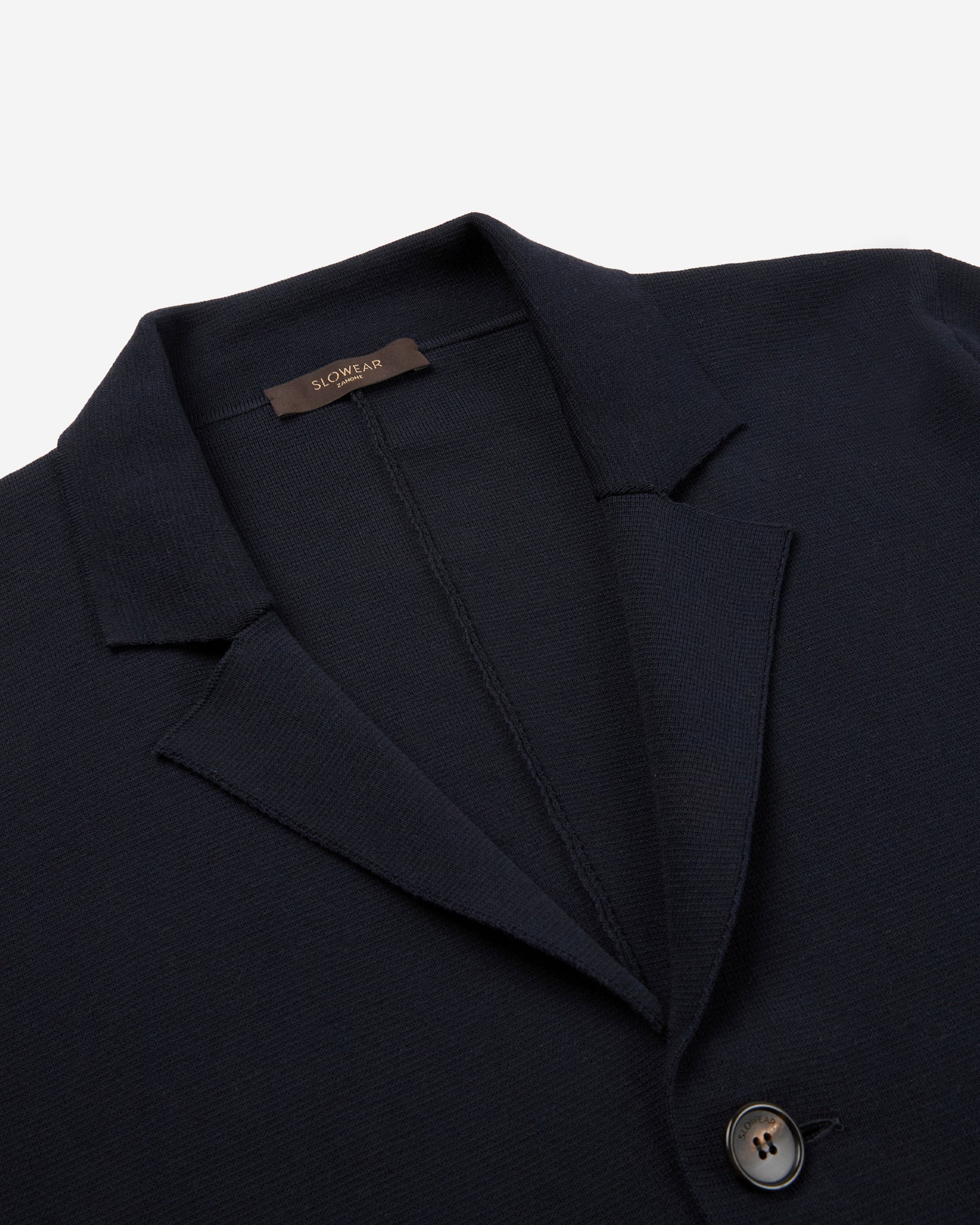 A hybrid between outerwear and knitwear, this crepe cotton jacket combines the natural sophistication of the design with the soft comfort of cotton. The fabric is characterised by the iconic material and textured feel of crepe cotton, selected for its superior quality and produced through a certified process that guarantees the safety of people and the environment and minimises the use of harmful chemicals at all stages of production. With its close fit, this model offers maximum versatility of use.