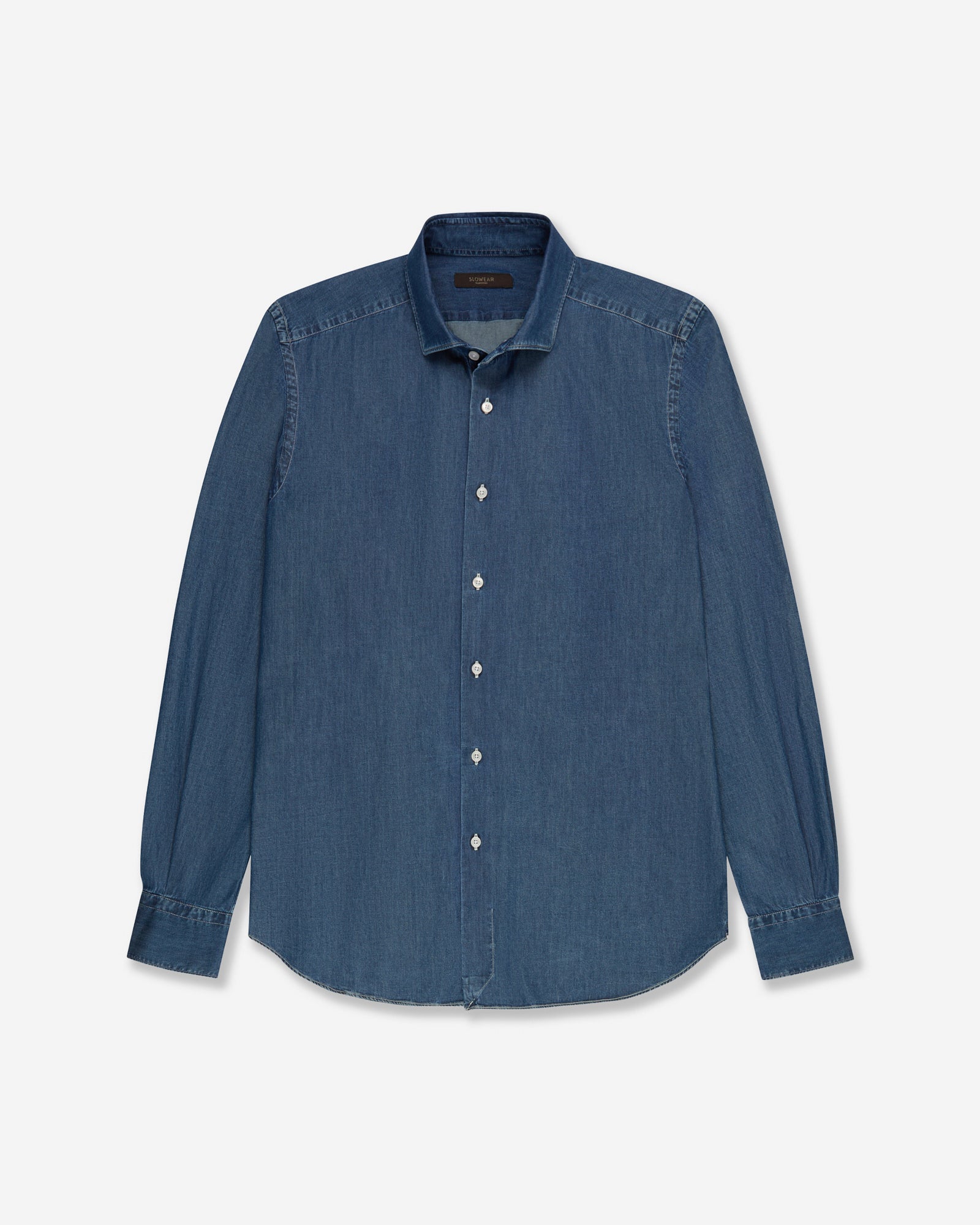 Iconic by nature, the denim shirt transcends eras and styles without losing its expressive strength. A garment born from the meeting of workwear tradition and sartorial sensibility, becoming an essential piece that transcends seasons and occasions. Made from lightweight pure cotton denim, it is designed for the spring–summer season: the compact yet breathable fabric ensures comfort and freshness, while maintaining a soft, natural feel. Whether worn alone or layered, open over a T-shirt or styled with tailored trousers, it conveys an understated, effortless elegance. Moreover, the fabric has been produced through a certified process that ensures worker safety and respect for the environment at all stages of production.