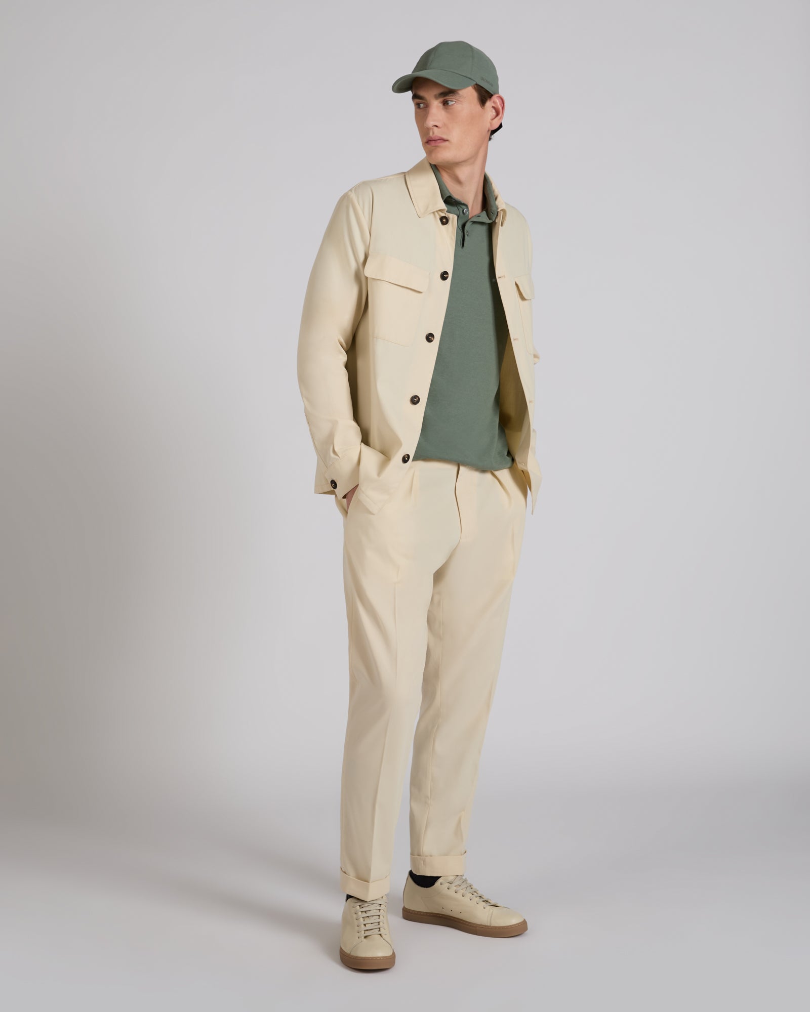 Intensive research in the field of cottons has given rise to IceCotton, an exclusive yarn with a strong, light and breathable structure and great heat regulation properties, making it ideal for all seasons. A crisp and cool garment that will accompany your daily outfits, offering comfort and performance. In addition, the fabric is certified as organic cotton, ensuring personal safety and care for the environment at every stage of production.