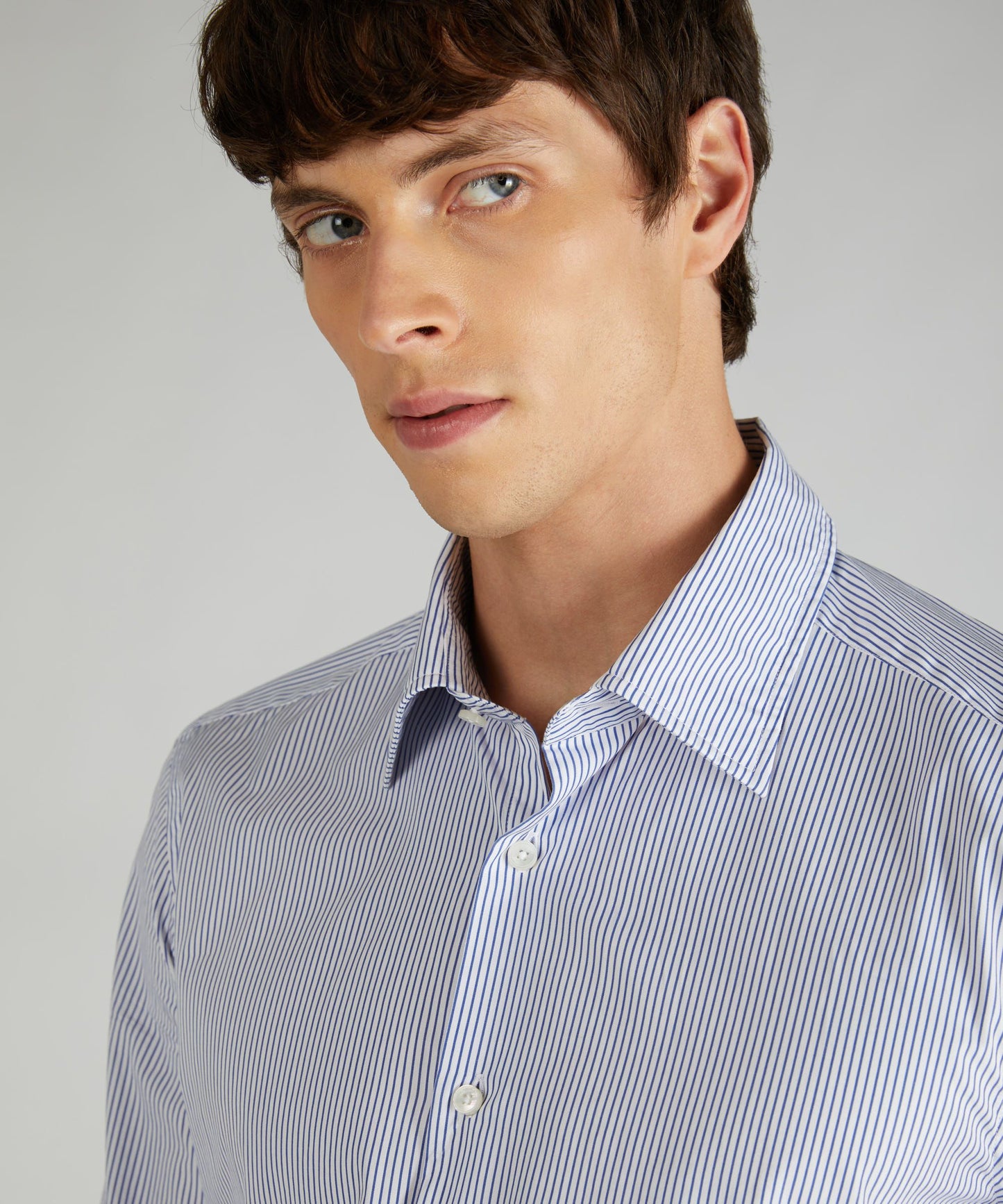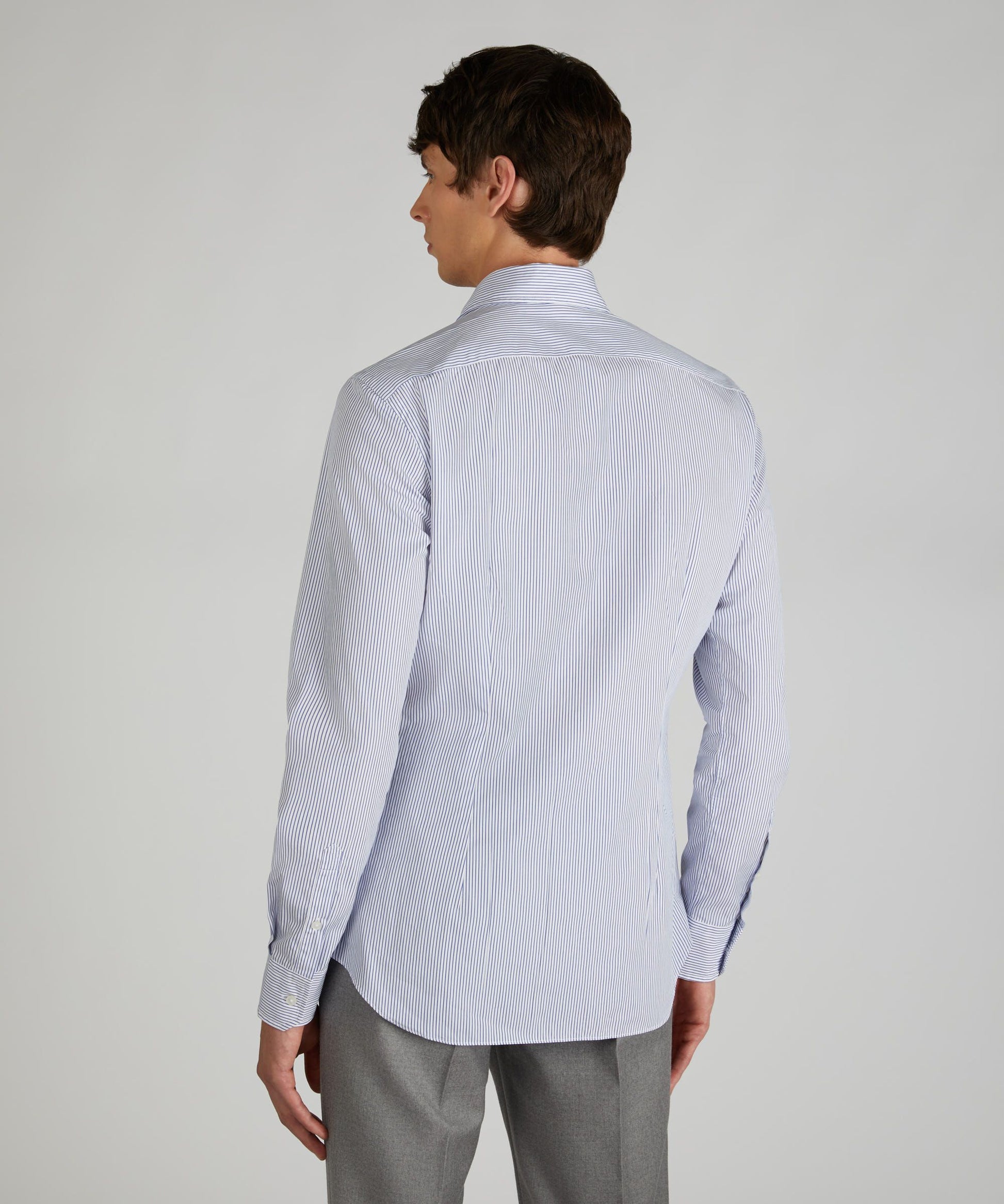 A refined and versatile item from the season's collection, this slim-fit shirt is enhanced by an iconic wand pattern. The back dart helps increase the comfort of the garment, while enhancing its silhouette. In addition, the fabric was made ensuring personal safety and care for the environment in all stages of production.