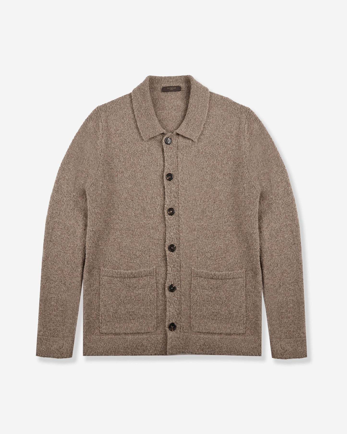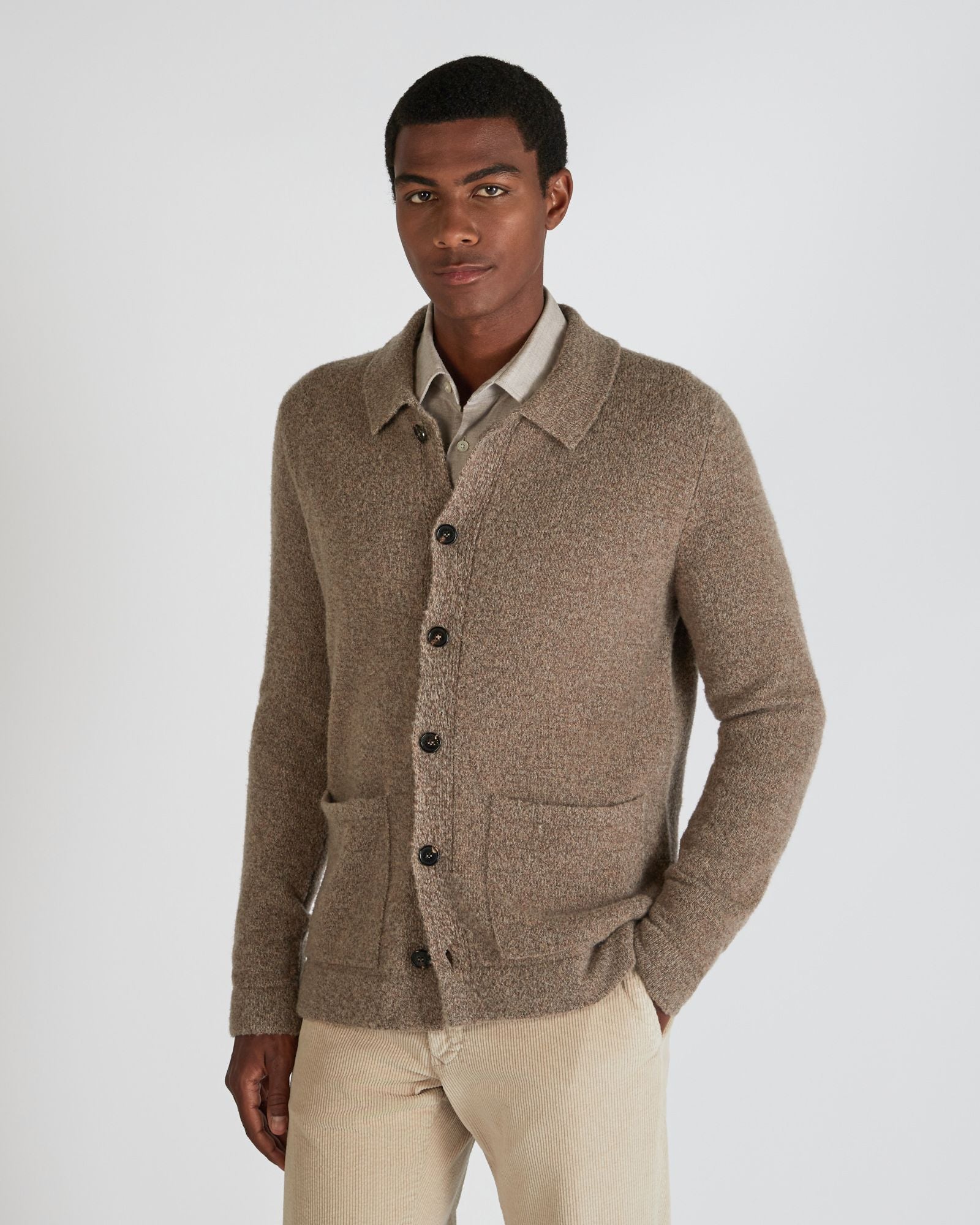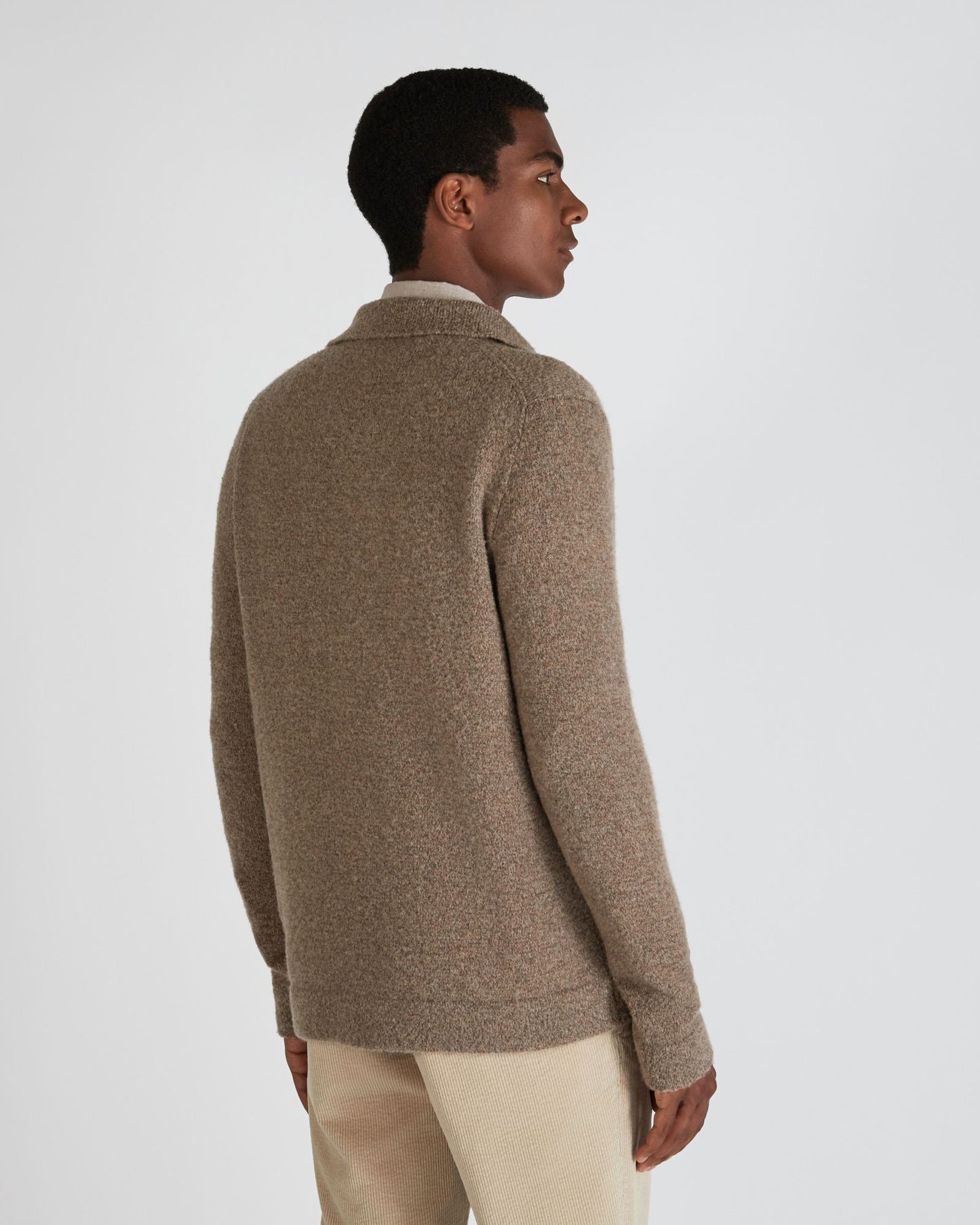Enveloping softness and material style come together in this sweater made of bouclé yarn, a refined process that creates a surface rich in movement and three-dimensionality. The distinctive curly texture of bouclé gives the garment a warm appearance and a cosy, comfortable feel when worn. The chosen material is a refined Geelong wool. Sourced from the first shearing – carried out around six months after the animal's birth – this wool is exceptionally soft and durable. It has been produced through a certified process that ensures the safety of people and the environment at every stage of production.