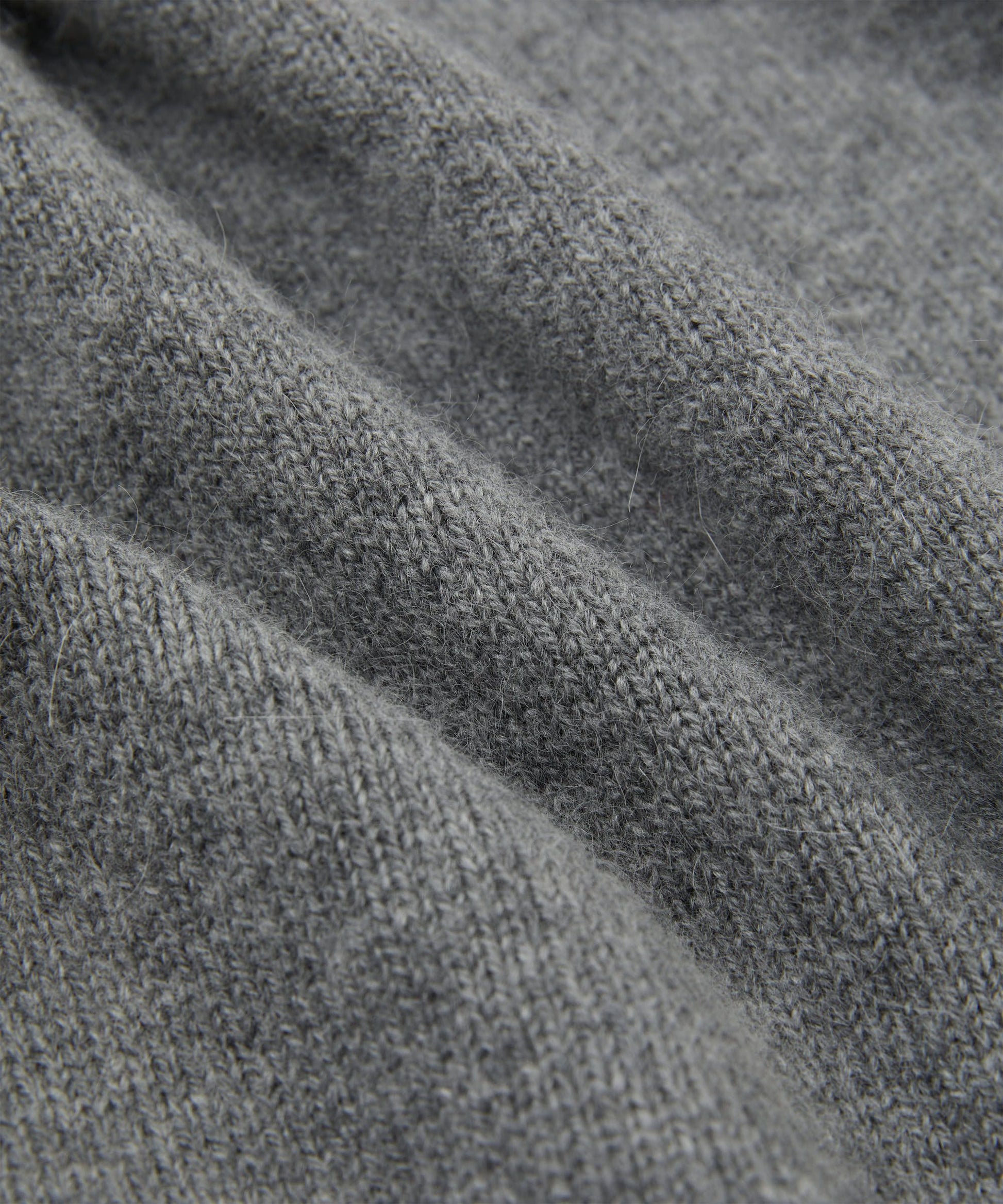 The intrinsic value of this garment lies in the choice of raw materials and their very high quality. The soft and warm wool is produced through a certified process that ensures worker safety and respect for the environment at all stages of production. The precious Angora component – unique in the world for its softness, warmth and shine – is enriched by a certification that ensures the welfare and respect of the farm animals and the "collection" of the animals' wool only by shearing.